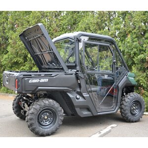 Lukittavan lavakate muuttaa Can-Am Traxterin lavan peräkontiksi. Avaamista auttaa kaasujouset, jotka pitävät katteen auki.