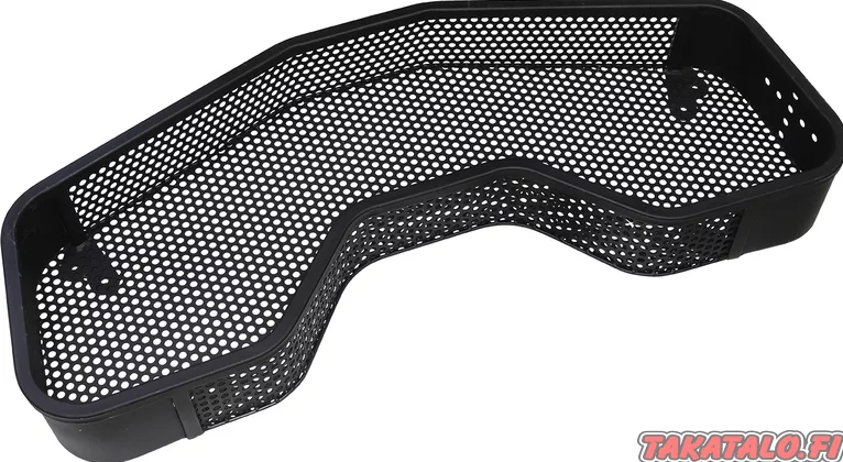 The frame is made of strong steel. The perforated bottom and front/rear panels ensure the basket doesn't fill with water during heavy rain. The holes also make it easier to strap down cargo and mount the basket onto the ATV. The sides are equipped with thick, durable metal plates with multiple pre-drilled holes. These make it easy to attach accessories like a fuel canister or fire extinguisher.