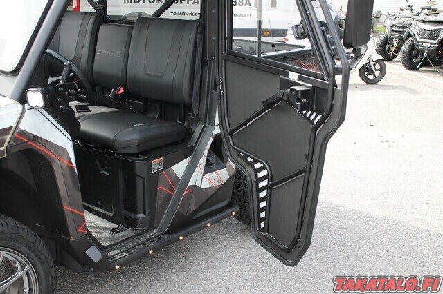 Tässä on valmiiksi varusteltu Side-by-side mönkijä T1b luokkaan (max. 60km/h ja T-ajokortilla ajettava) ja kun on kyseessä meidän näyttelykone, ei toista samanlaita tule vastaan.