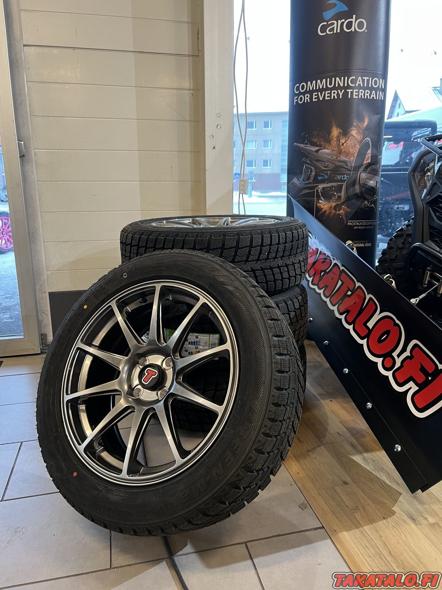 Valmis setti koppimönkijän alle! Tyylikkäät 18" alumiinivanteet ovat kiedottu kitkarenkaiden ympäröimäksi ja odottaa vain asentamisen mönkijän alle.