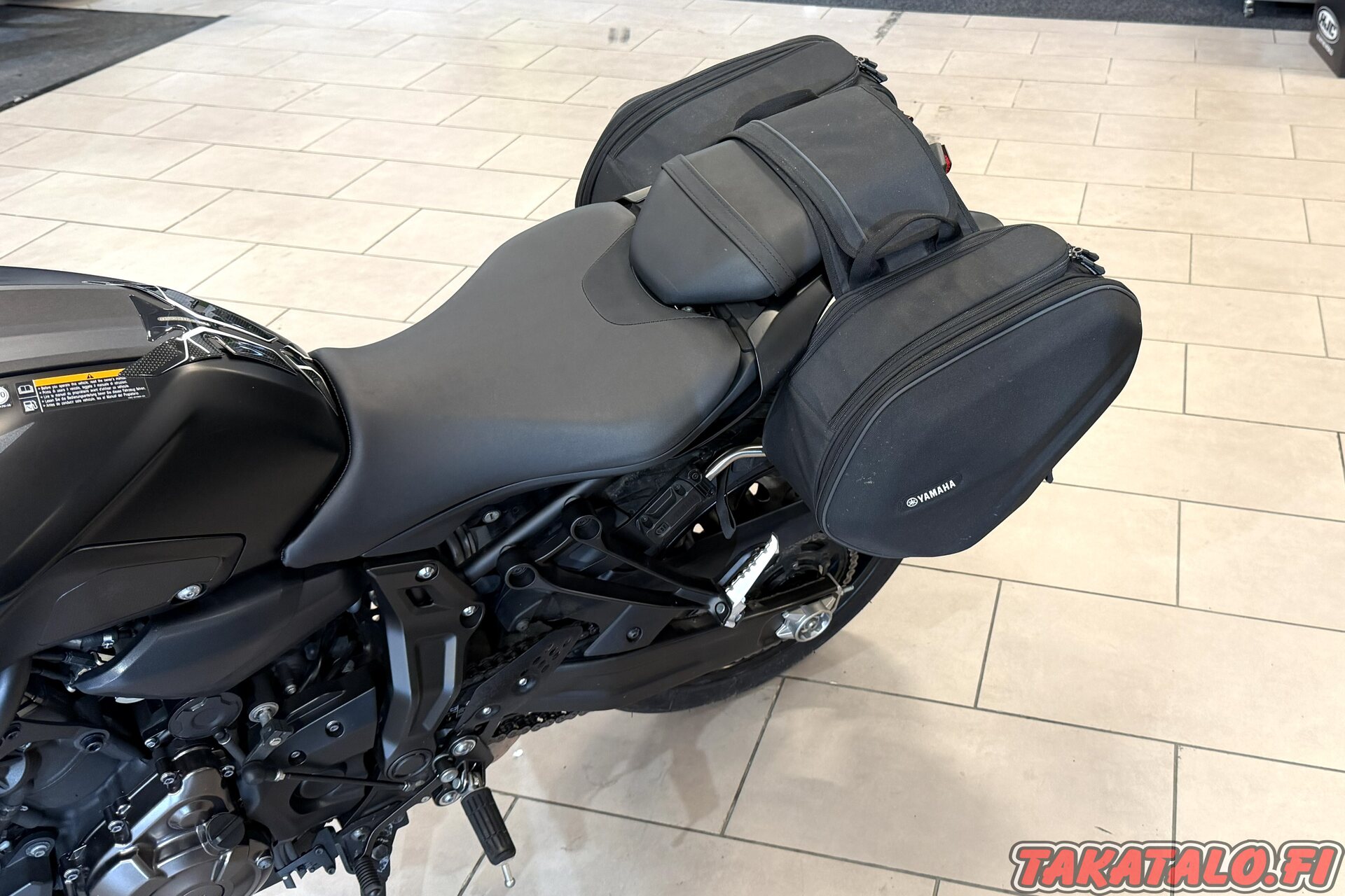 This one is nicely equipped for touring. The higher plexiglass deflects the wind at higher speeds, the phone holder attached to the bar puts directions on your phone within easy reach, and the spacious Yamaha fabric bags absorb the travel essentials.