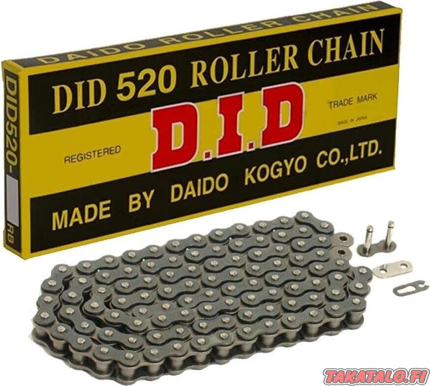 D.I.D:n 520HS ilman tiivisterenkaita on edullinen ratkaisu motorcross ja enduropyörän ketjuiksi. Off-road ajoon crossipyörille ja vastaaville max. 450Cc pyörille suunniteltu ketju jousilukolla, eli asennus onnistuu ilman erikoistyökaluja. Huomaathan, että voit joutua lyhentämään ketjua, jotta se on sopivan mittainen.