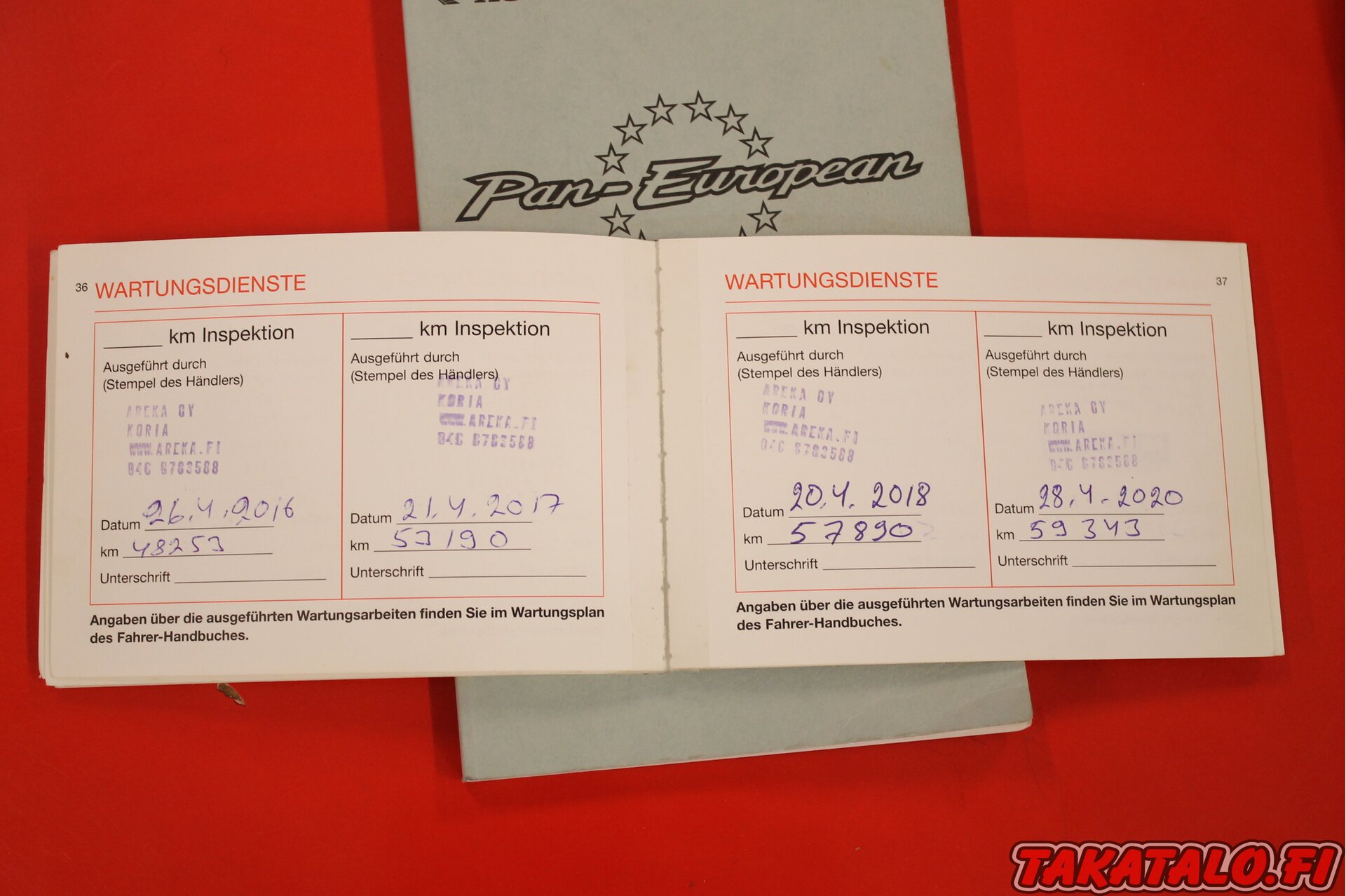 Oikean puolen katteesta puuttuu yksi musta muoviluukku, mutta muuten ei ole puutteita. Huoltokirja on täytelty ja renkaat on aika uudet!