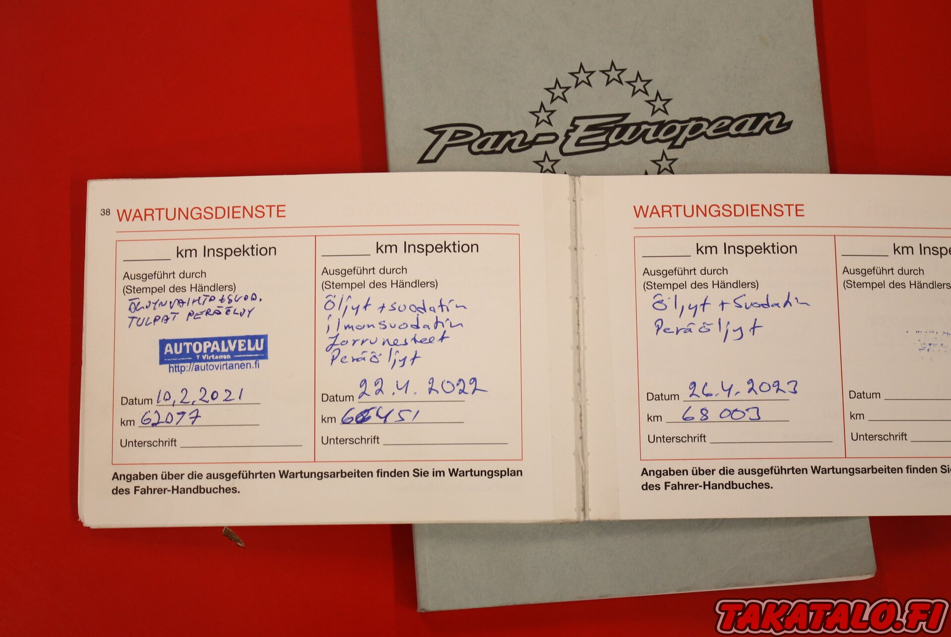 Viimeisin merkintä kirjassa on 75600km kohdalta ja tehty tänäkeväänä.