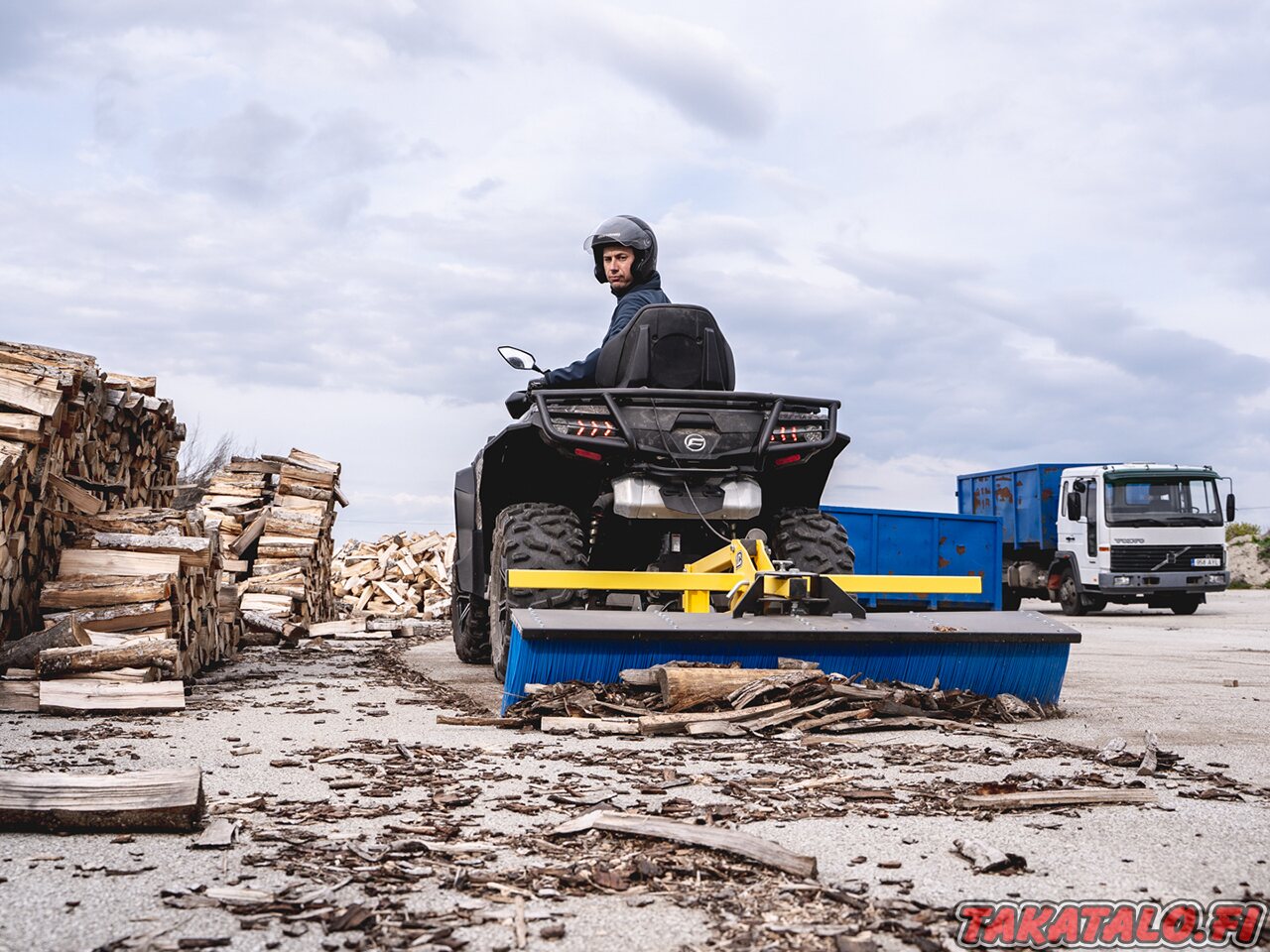 Iron Baltic takanostolaitteeseen sopiva tieharjalla puhdistat alueet kuten jalkakäytävät, parkkialueet, varastot tai navetat erinäisistä jätteistä, lehdistä tai lumesta.