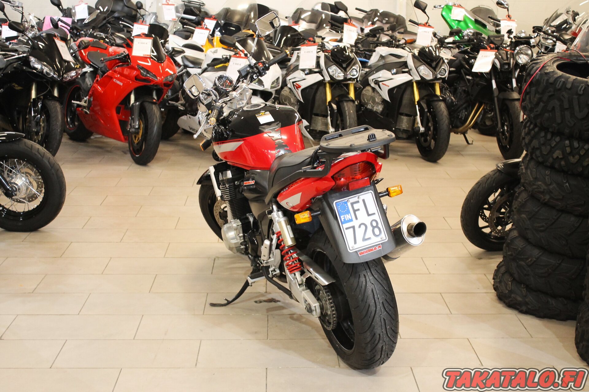 Jos olet tulossa ostamaan juuri tätä käytettyä moottoripyörää, niin ilmoita tulostasi etukäteen jotta voimme siirtää sen valmiiksi takarivistä eturiviin :)