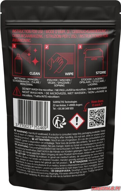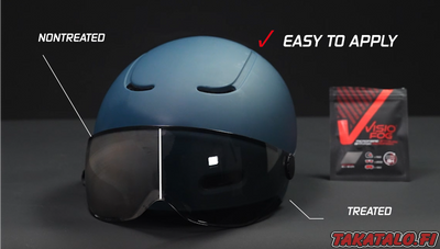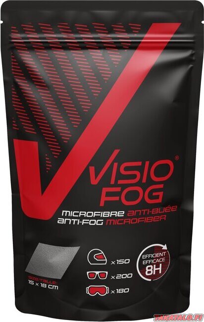 Visiodry Visiofog on mikrokuituinen liina, jossa on mukana huurteenestoa estäviä ainesosia. Mikrokuituliina on uudelleen käytettävissä jopa 200 kertaa.