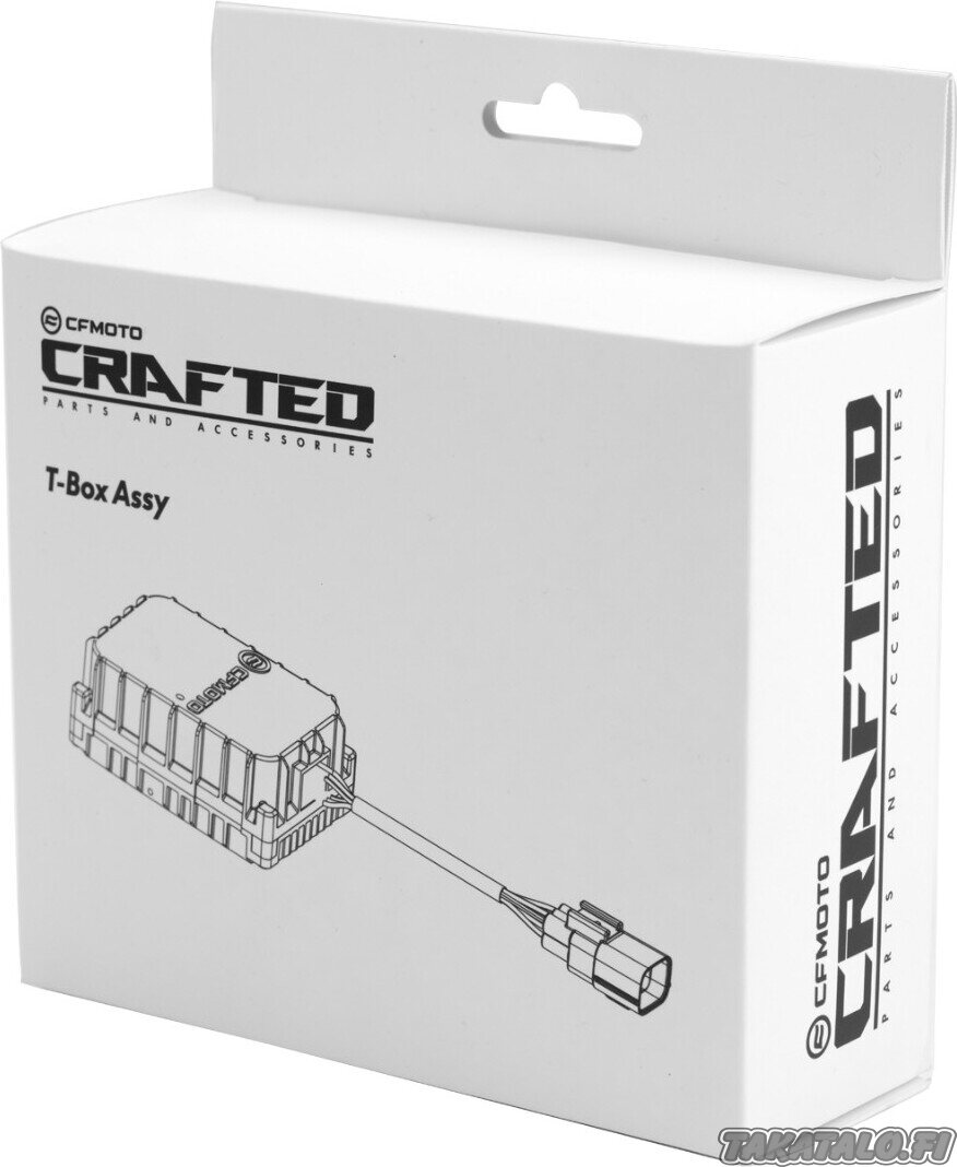 T-Box on älykäs telematiikkalaite, joka kytketään moottoripyörän tai mönkijän johtosarjaan. Asennuksen jälkeen voit seurata puhelimellasi CFMOTO Ride-sovelluksella ajokkisi sijaintia, ajohistoriaa sekä kuntoa. Puhelimesi toimii T-Boxin asennuksen jälkeen digitaalisena avaimena ja ajoneuvosi päivitys onnistuu myös etänä. T-Boxilla saat käyttöösi ajoneuvon alkuperäisen navigoinnin, jos siinä on siihen valmius.