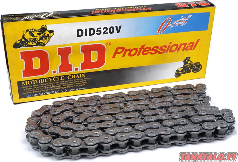 Kun haet katu- tai kevyeen sporttikäyttöön luotettavaa, kestävää ja hinnaltaan järkevää ketjua, on D.I.D 520V varma valinta. Kyseessä on O-rengastiivistetty ketju, joka suojaa ketjun akselitappeja lialta ja kosteudelta sekä varmistaa jatkuvan voitelun ketjun sisällä. Tämä auttaa pidentämään ketjun käyttöikää verrattuna perinteisiin ei-tiivistettyihin ketjuihin.