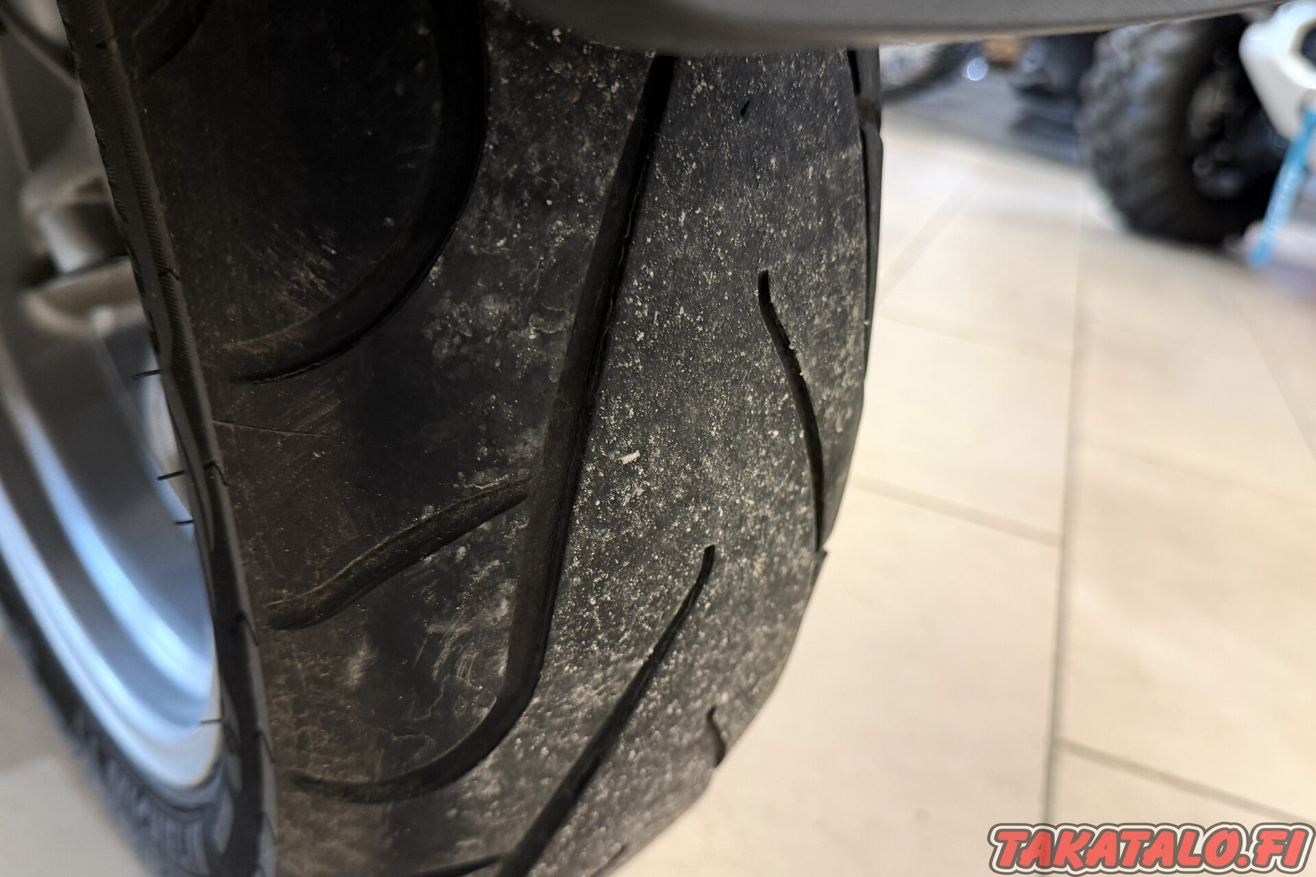 Huoltohistoriasta ei ole kuin tarinoita, joten suositellaan huollon tekemistä. Renkaissa vielä ok pinta.