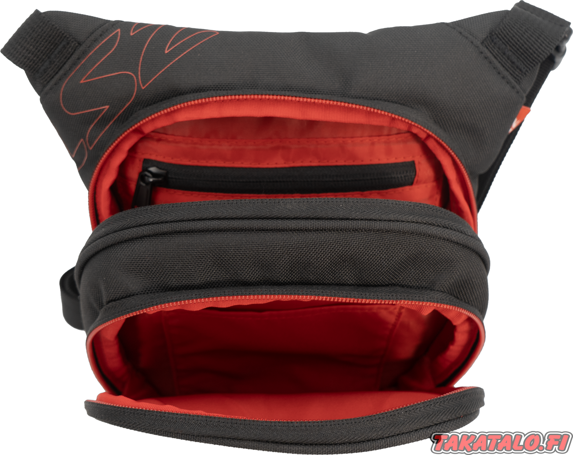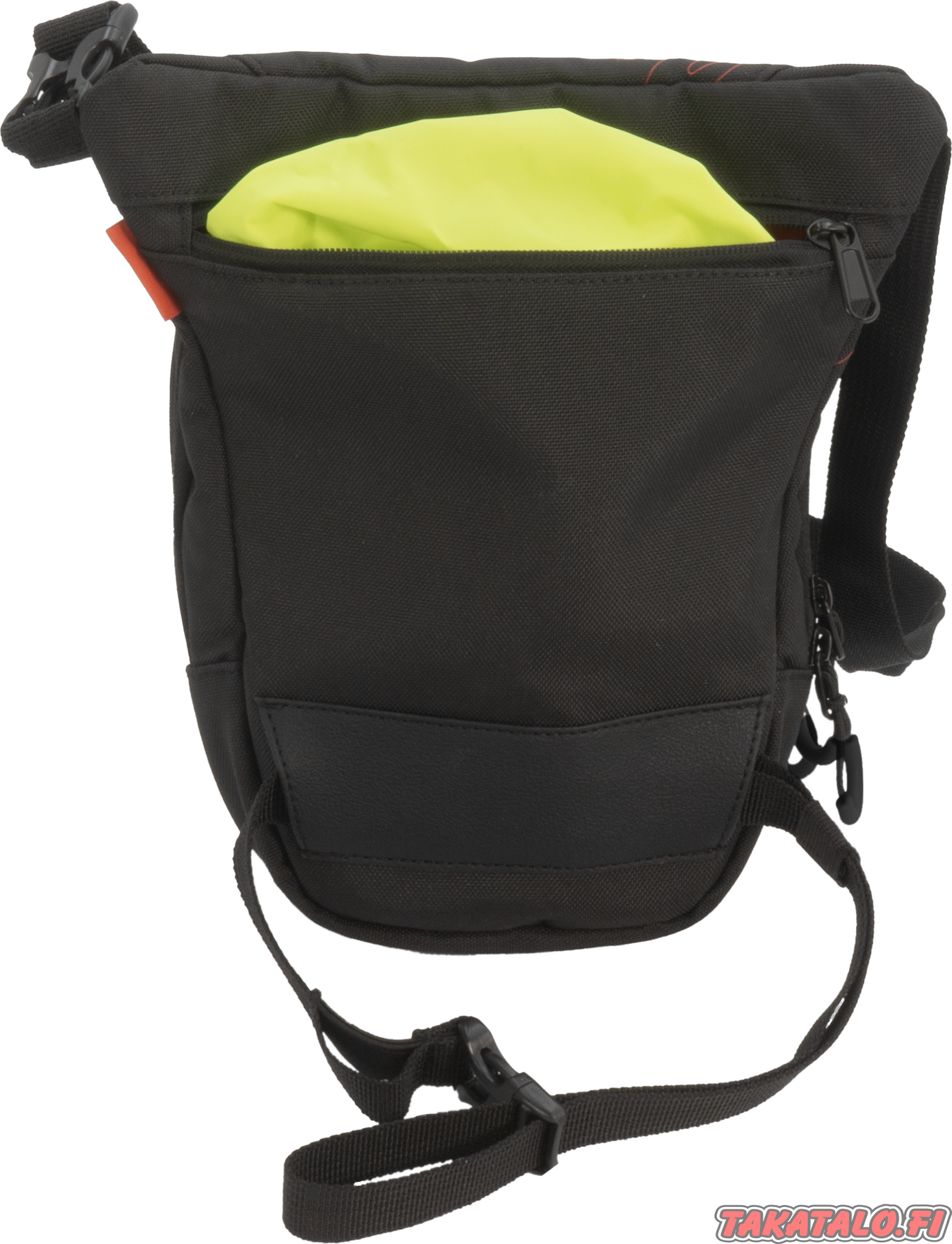 - Muokattava kiinnitys: Irrotettava ja säädettävä jalkahihna mahdollistaa laukun käytön joko oikeassa tai vasemmassa jalassa.