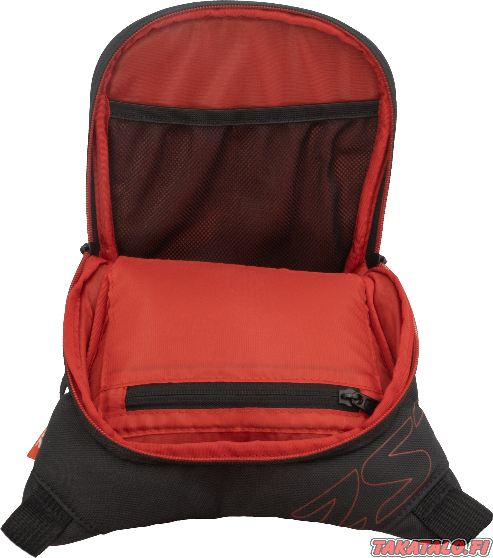 - Monipuoliset säilytystilat: Sisältää kaksi päälokeroa, joustavan verkkotaskun sekä etutaskun, jossa on oma paikka älypuhelimelle.