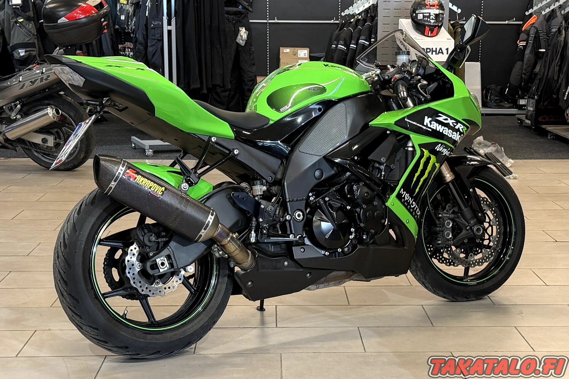 Kawasaki ZX-10R on muoviluoti parhaimmillaan. 180 hevosen voima korkealle kiertävästä nelosmoottorista, agressiivinen ajoasento, tehokkaat jarrut ja toimiva alusta tekee ajamisesta nautinnon. Ja tottakai Kawasakin vihreänä!