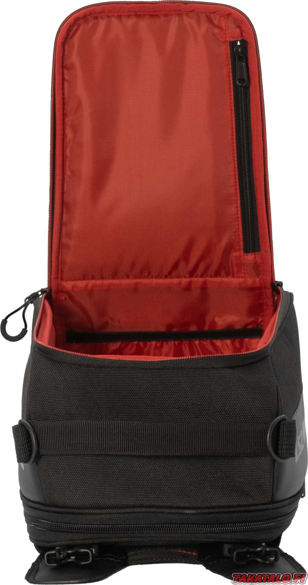 Käytettävyys on tämän laukun suunnittelun ytimessä: läpinäkyvä kosketusnäyttöystävällinen tasku mahdollistaa kartan tai puhelimen seuraamisen ajon aikana, ja suuret vetoketjun vetimet on optimoitu toimimaan sujuvasti myös ajohanskat kädessä.