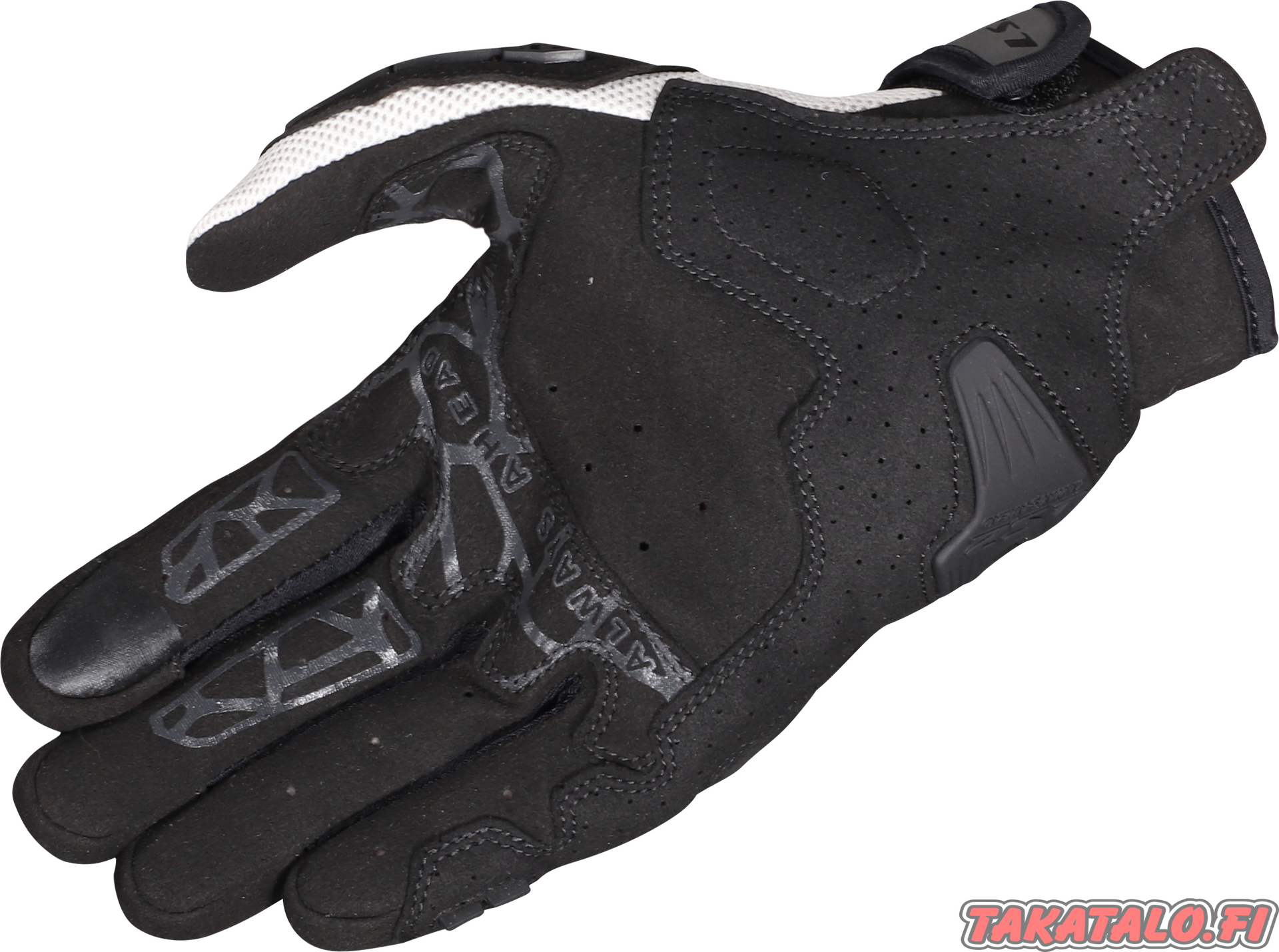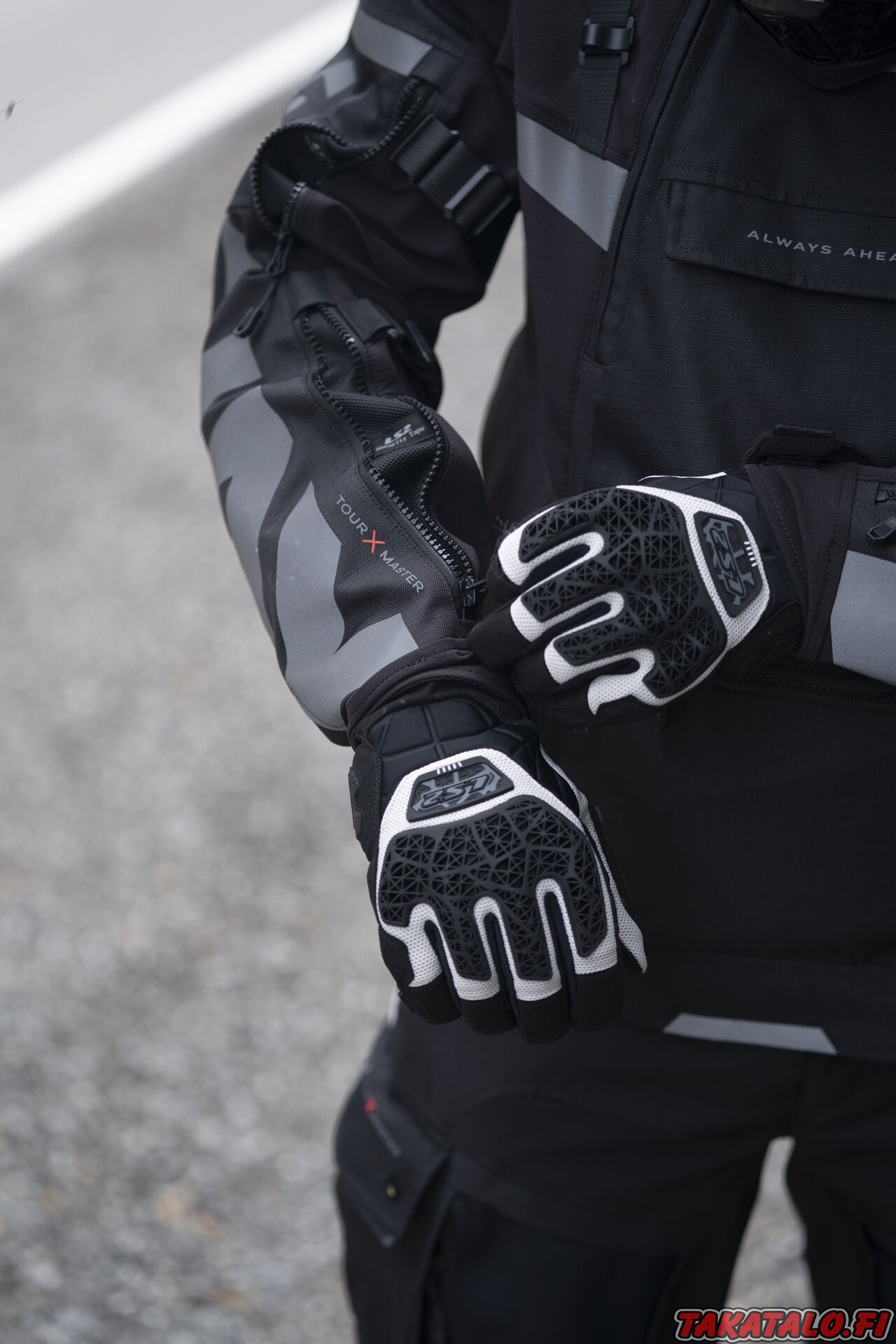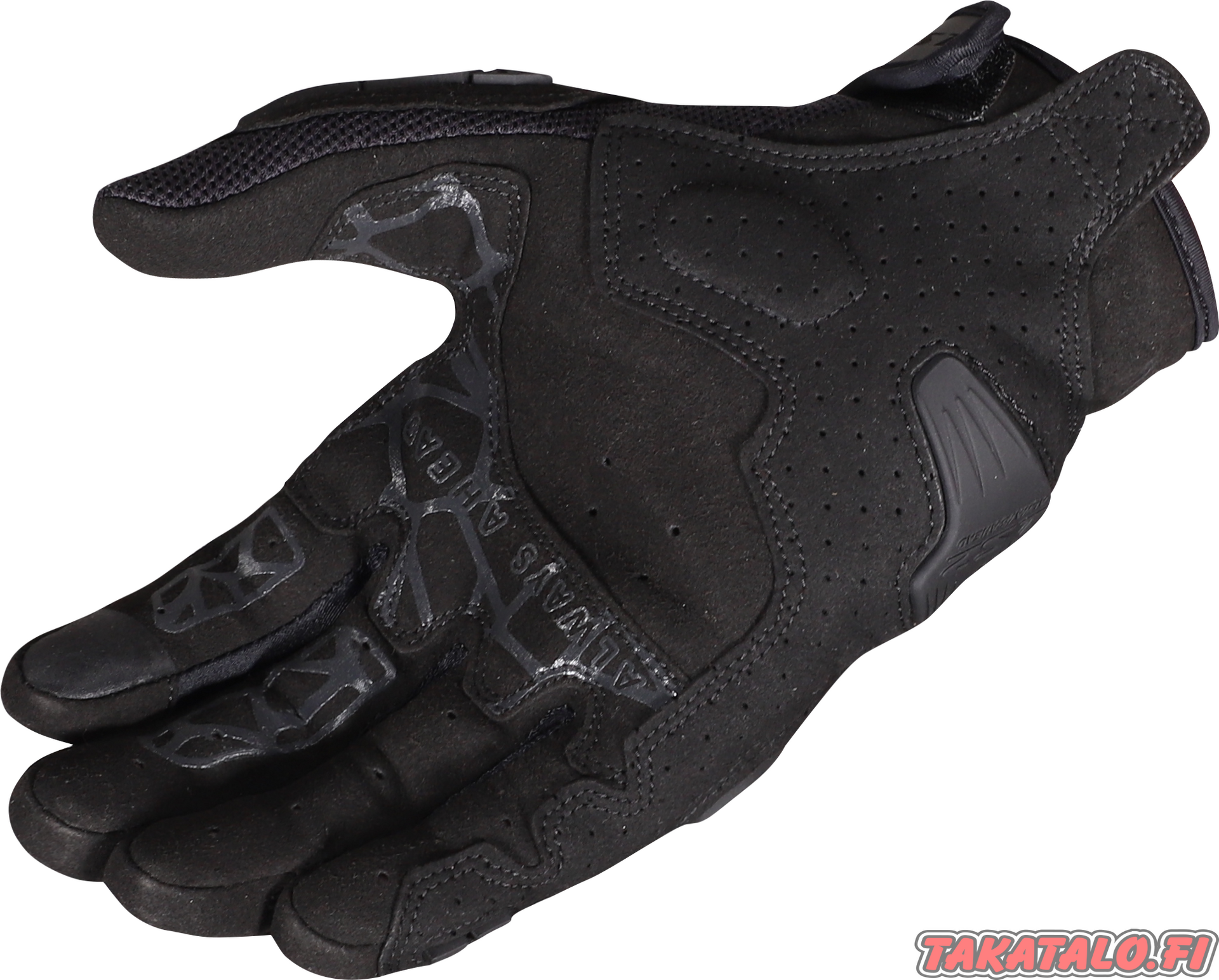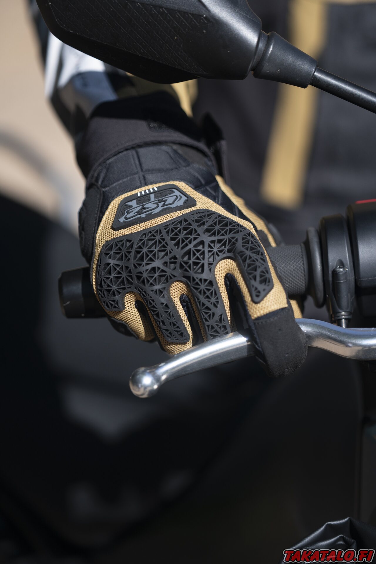 Hanska on varustettu iskunvaimennuskykyisillä TPR-rystyssuojilla ja kämmenen liukusuojilla, jotka tarjoavat sertifioitua suojaa matkantekoon. Perforoitu kämmenosa ja sormien ilmanvaihtoalueet pitävät kädet viileinä, ja silikonipainatukset takaavat lipsumattoman otteen ohjaustangosta.