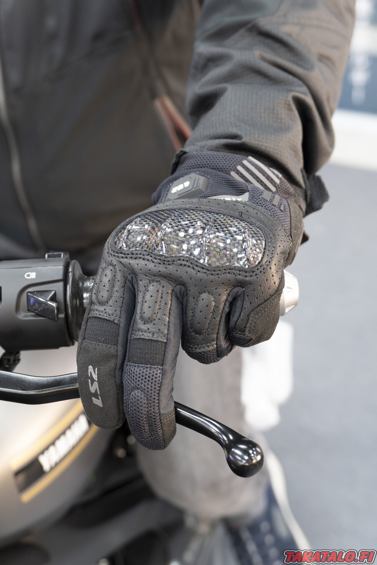 - Suojat: Hiilikuituinen rystyssuoja, TPU-kämmensuoja ja SBR-vaahtovahvikkeet