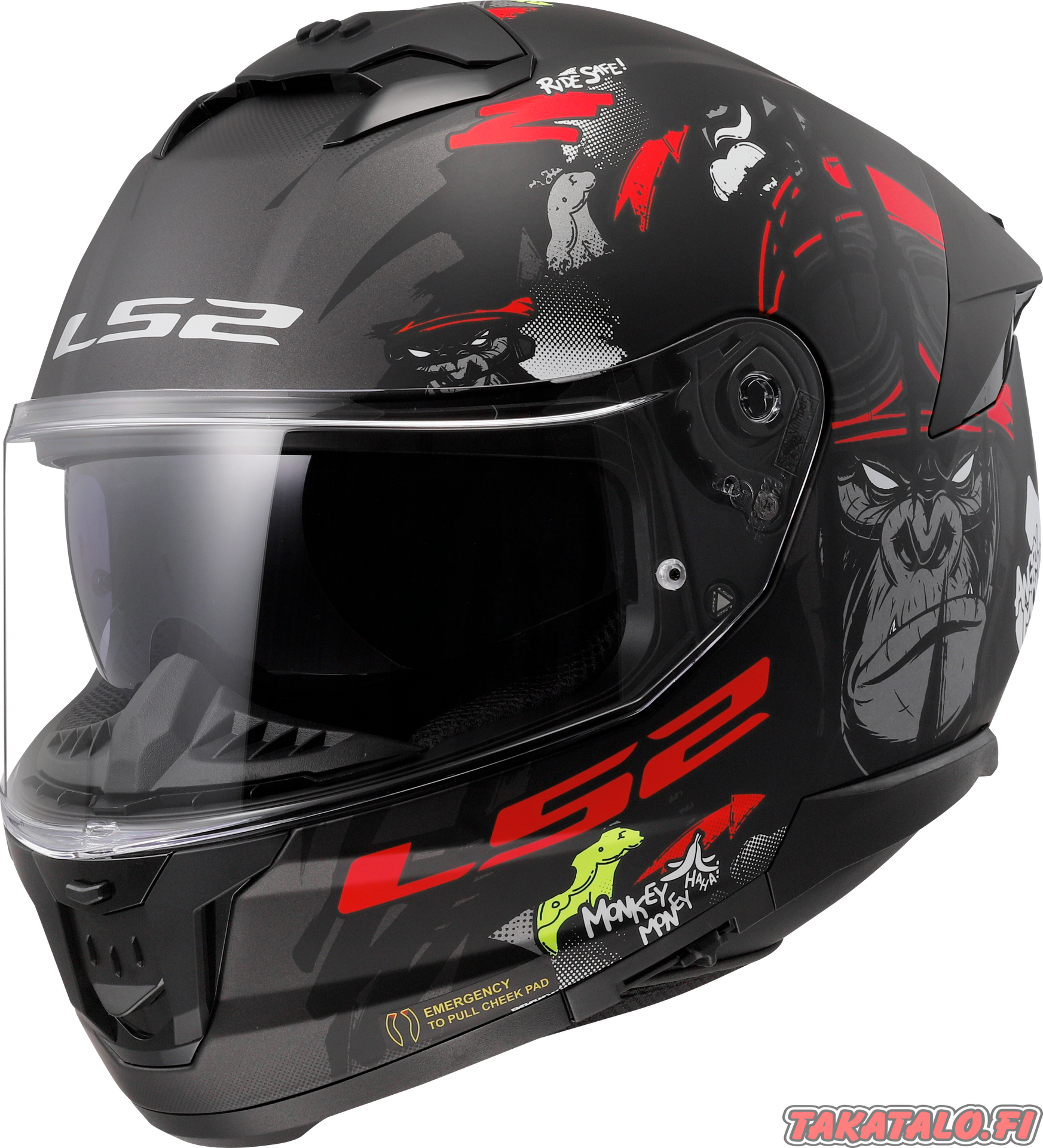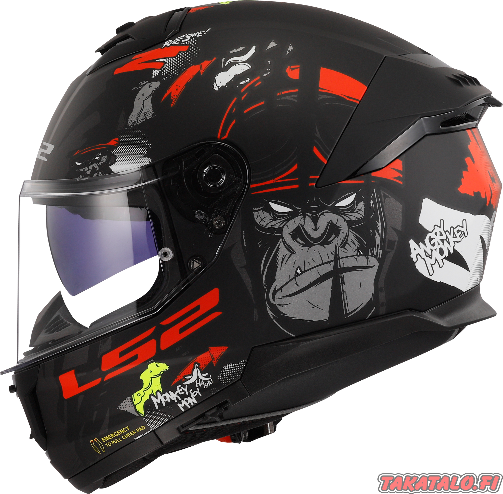 LS2 FF808 Stream II upealla Angry Monkey -grafiikalla! Tästä on kaverit kateellisia ;).