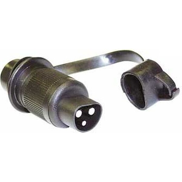 Muovinen 3-napainen pistoke suojakannella. Kätevä asennuksissa, missä täytyy johto kytkeä aijoittain irti.