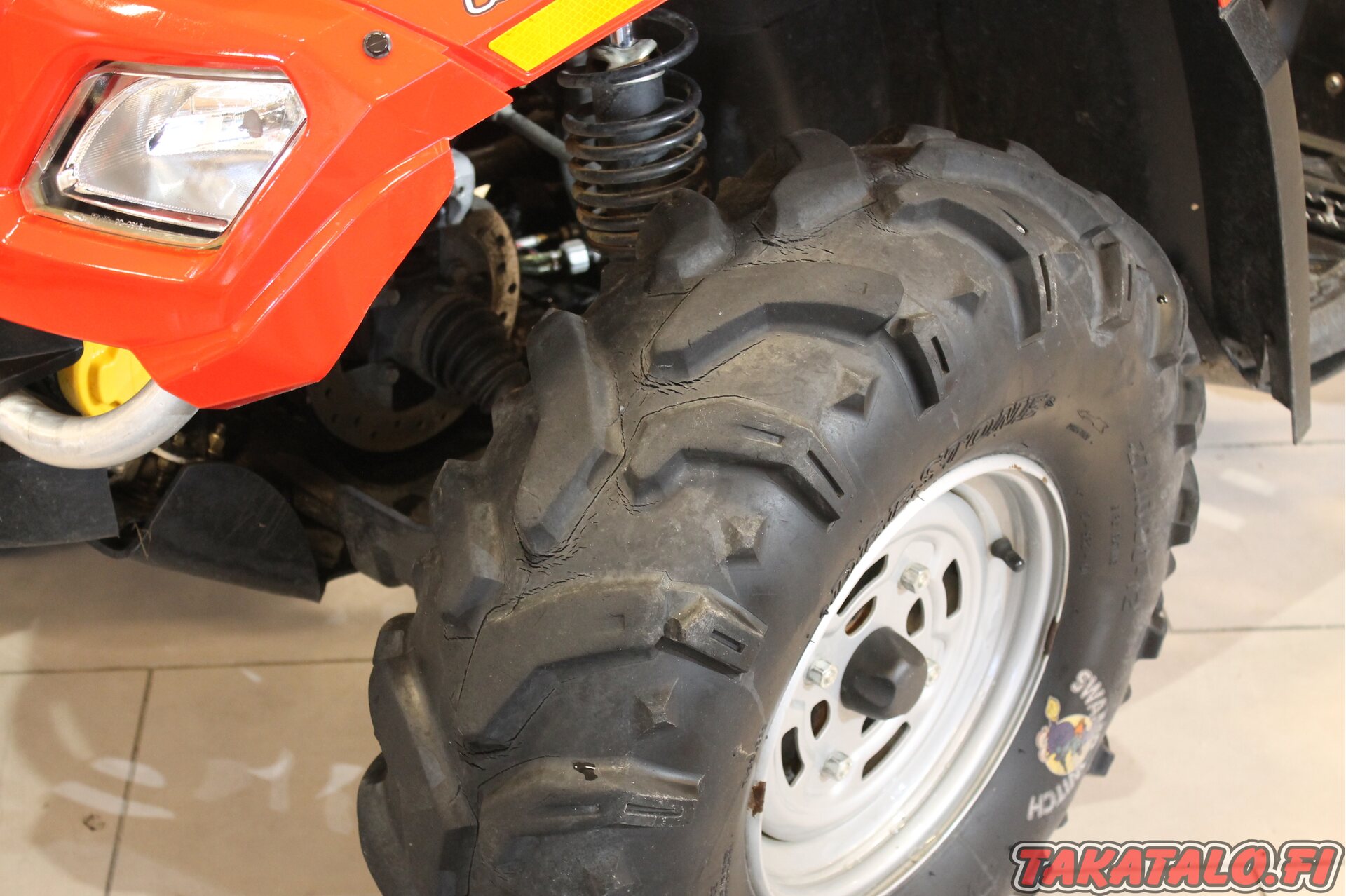 Varusteita noiden isojen 27" maastorenkaiden lisäksi on tosiaan vinssi ja muovinen pohjapanssari.