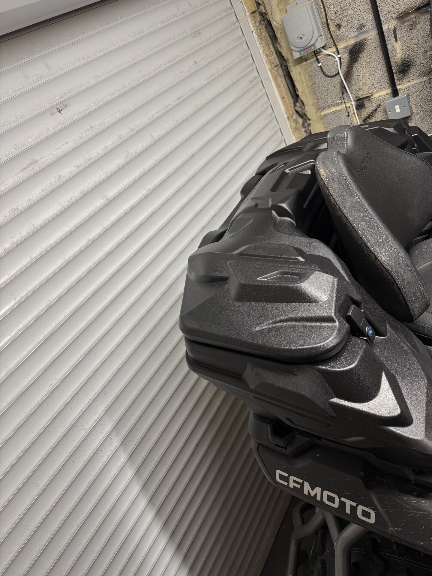Cutie de portbagaj spate cu încuietoare, compatibilă cu modelele CFMOTO CFORCE 850 și 1000 GEN 3. Compatibilă și cu modelele CFORCE 520 echipate cu portbagaj spate din plastic.