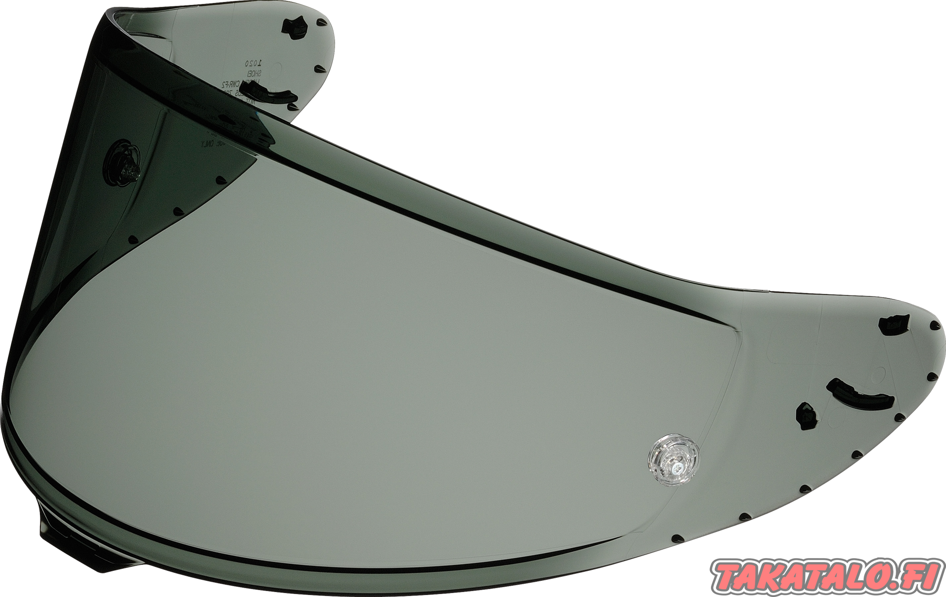 Tähän kaksiulotteisesti muotoiltuun CWR-F2R-visiiriin voidaan kiinnittää irtokalvoja (tear-off) ratakäyttöä varten. Epäkeskeiset kiinnitysnapit varmistavat kalvojen tarvittavan kireyden.