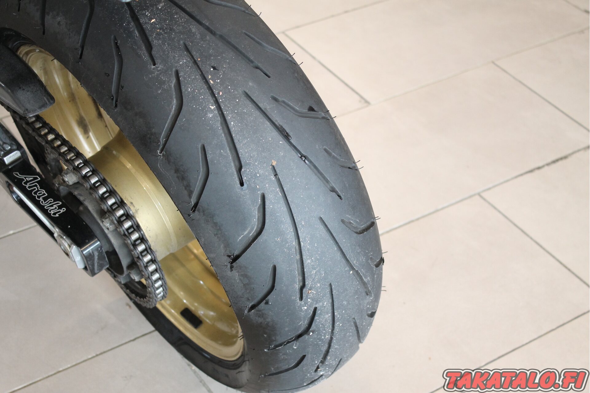 Mivv Sportline putki antaa helkutin röyheet ääne ja tämä on myös muutoskatsastettu pyörään! Kuulemma jossain satulan alla olisi Powercommander seoksia korjaamassa ja viimeisetkin hevoset takarenkaalle etsiskelemässä. Takarenkaalle muuten voima kelpaa! Takahaarukka on jatkettu ja vaihteet saa potkia pesään sifterin kanssa. Muuten poistuu!