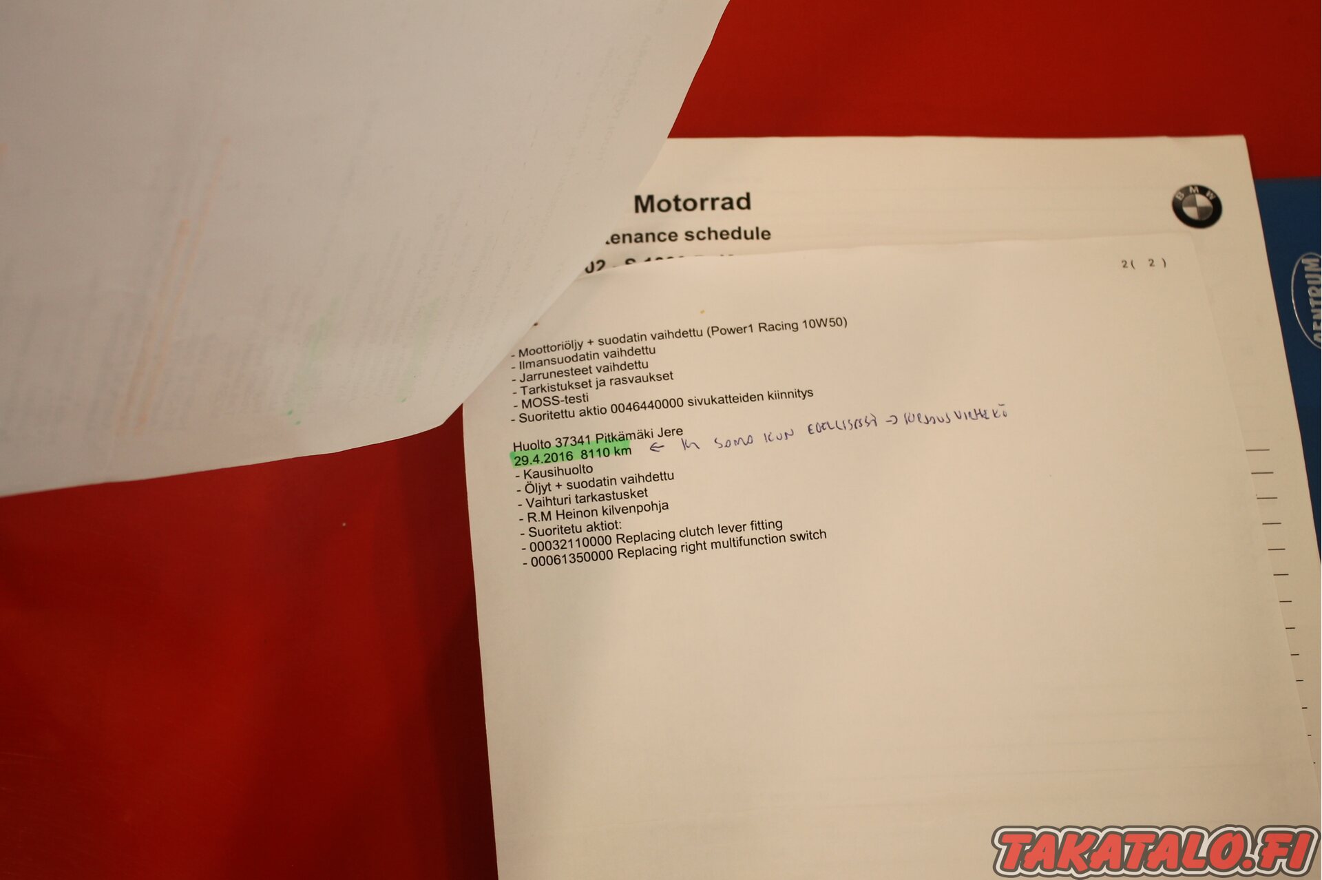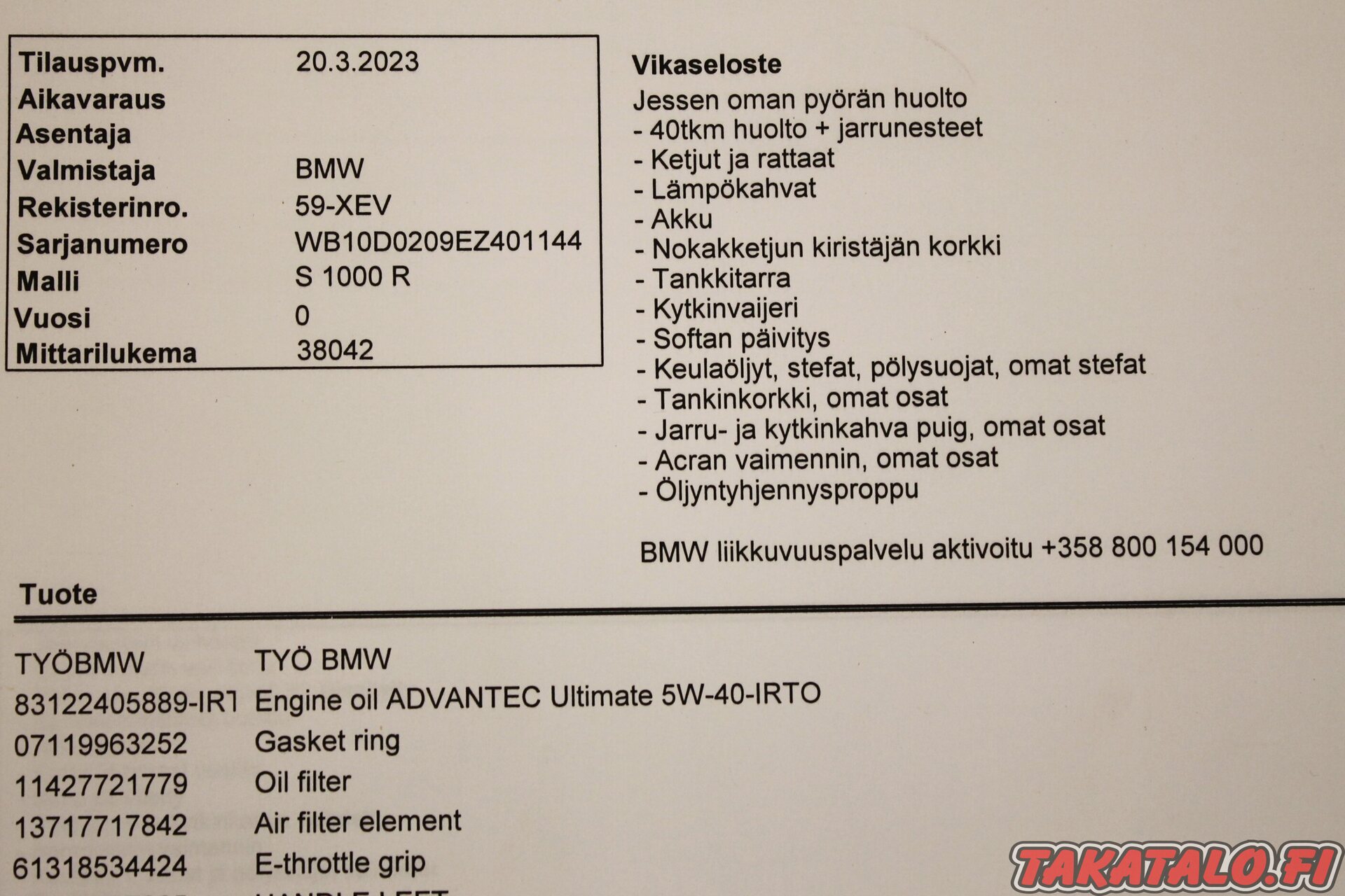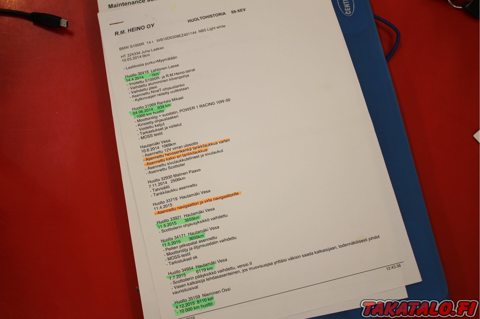 Huoltohistoriaa on mukana tulostettuna, sekä jälikäteen tehty uusi huoltokirja vanhojen dokumenttien pohjalta. Viimeisin huolto on juuri tehty iso 40tkm huolto, jossa myös venttiilien välykset tarkistetaan ja tähän pyörään myös keulahuolto tehty samalla!