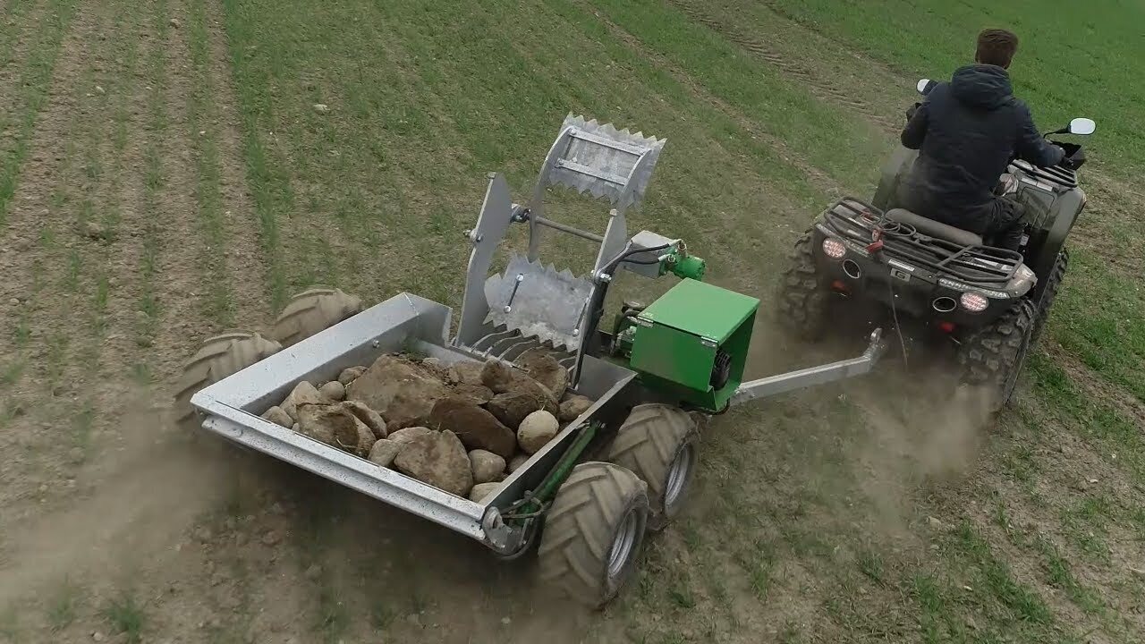 Ne ovat kivienkeruuseen tarkoitettuja työkoneita, joita voidaan vetää esim. mönkijän perässä.