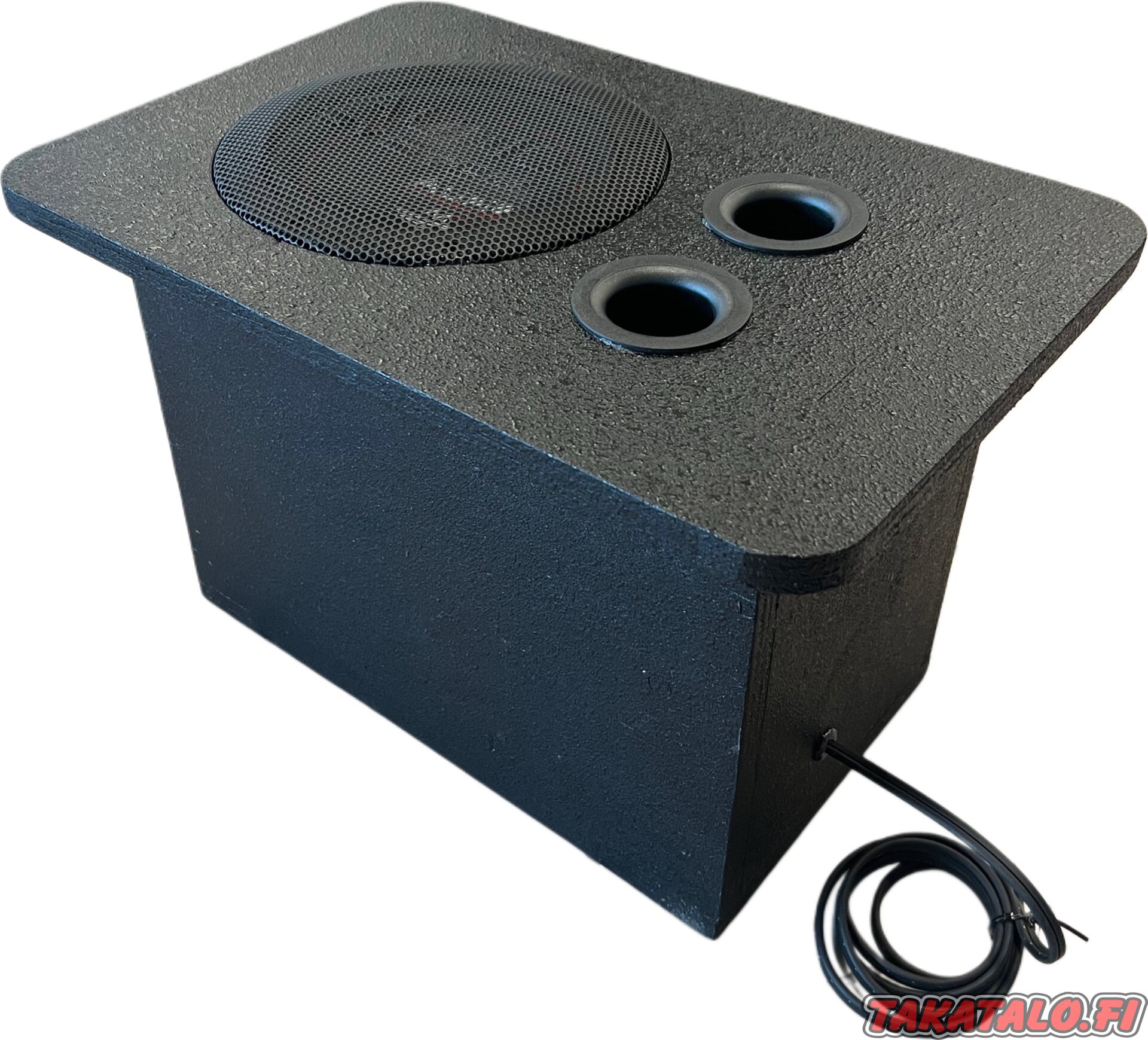 CFMOTO UFORCE 1000 mallikohtainen subwoofer kotelo on varta vasten suunniteltu asennettavaksi hyttiin matkustajan penkin alle. Mitoitus on jämpti, sopivuus täydellinen. Vankka runko kotelossa ja kulutusta kestävä pinnoite tekee tästä pitkäikäisen ratkaisun. Kotelossa on kaksi refleksiputkea, joiden avulla paine päästetään hivelemään matkustamossa olevien henkilöiden kehoja.