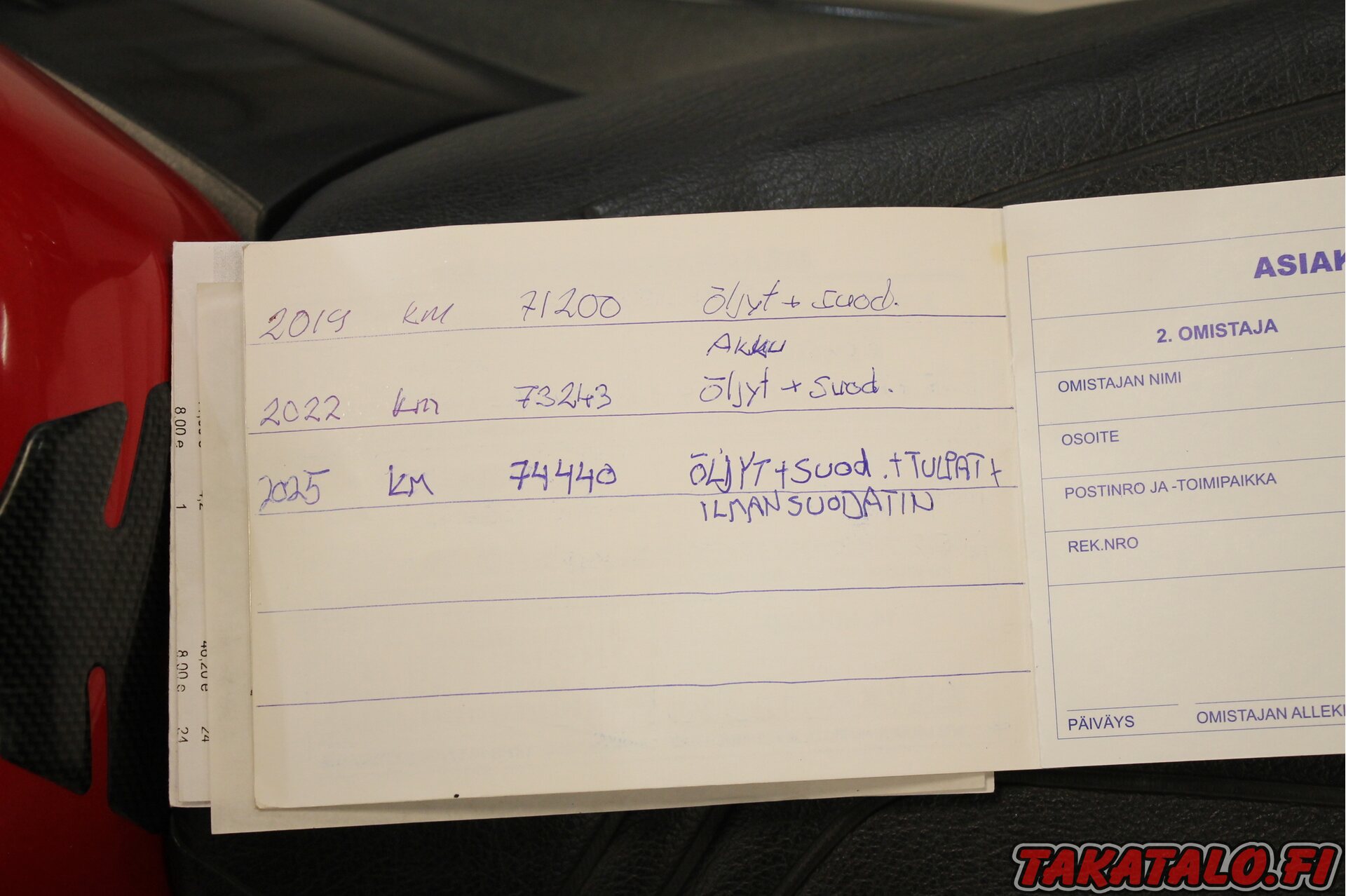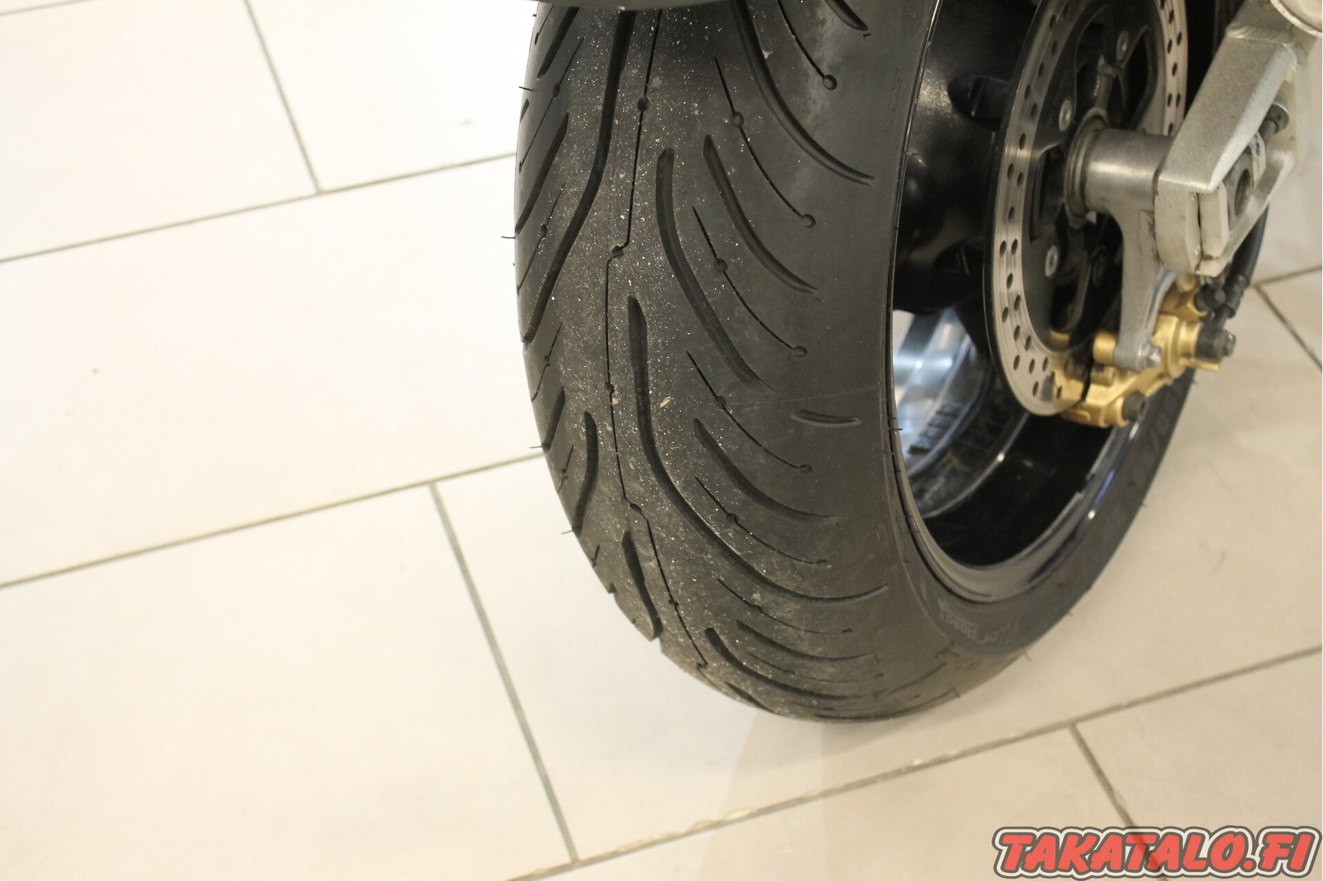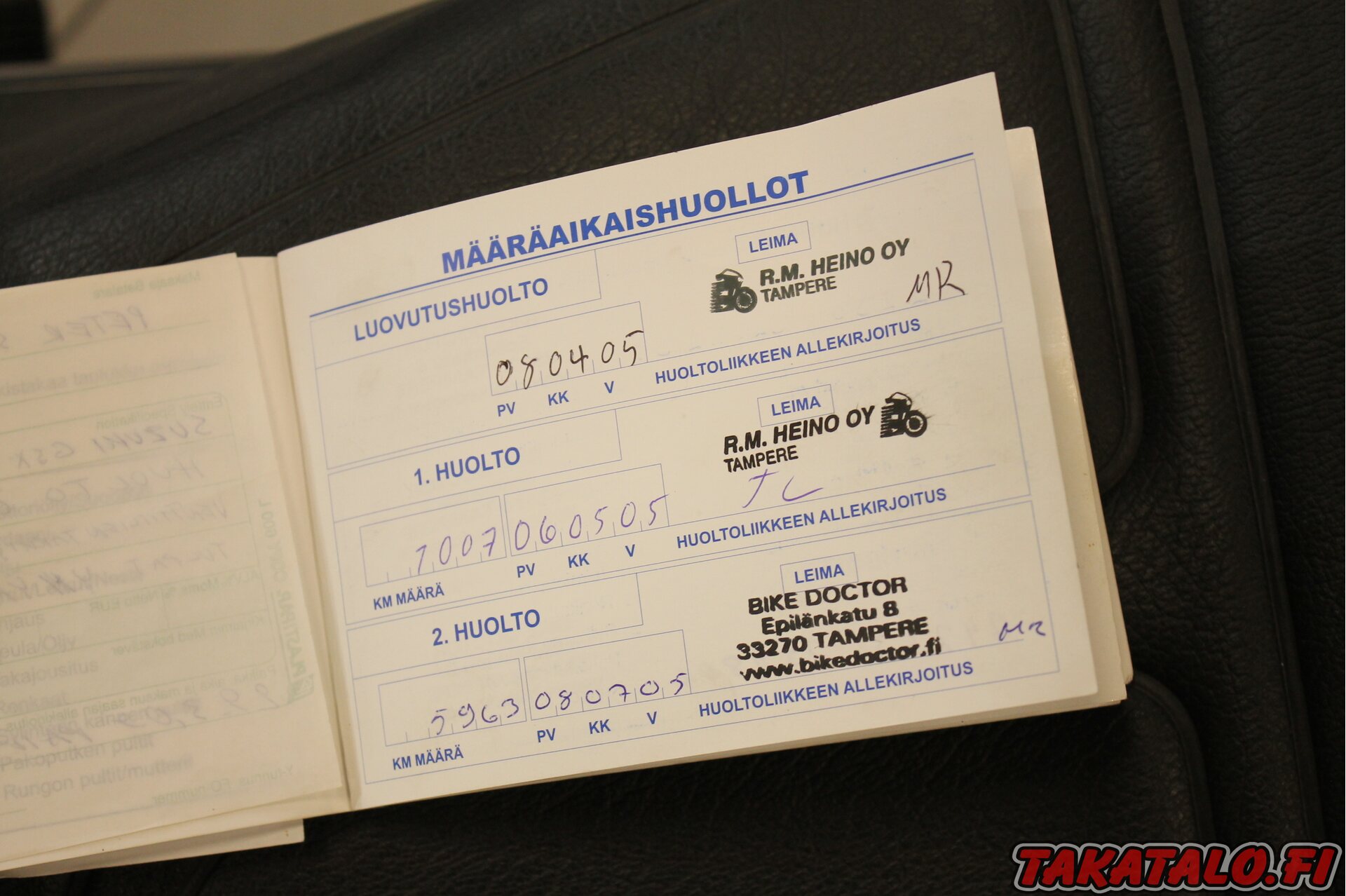 Pyörä on hienossa kunnossa ja tuli meille jo monesta kaupasta tutulta asiakkaalta. Huoltokirjaa ei ole, mutta kuulemma kesällä on öljyjen lisäksi vaihdettu tulpat ja suodattimet, sekä tehty etuiskarien huolto. Renkaat on melkein uudet!