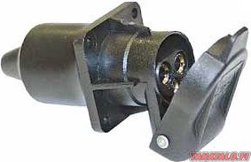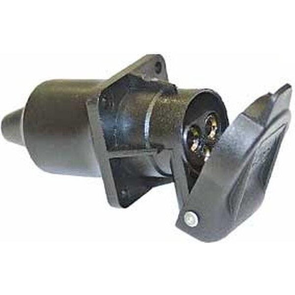 Muovinen 3-napainen pistorasia suojakannella. Kätevä asennuksissa, missä täytyy johto kytkeä ajoittain irti.