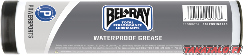 Bel-Ray Waterproof Grease is the legendary high-performance grease designed to meet the toughest challenges in powersports and industry. It’s the ultimate solution for environments where standard greases fail: salt water, mud, and constant moisture won't wash this lubricant away.