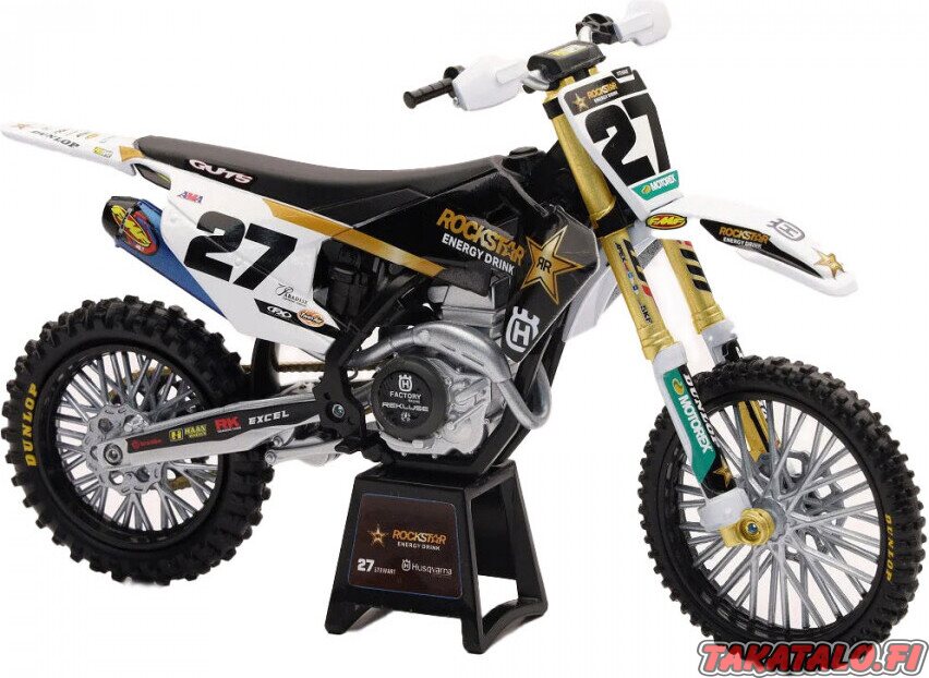 Täydellinen lahja motocross- ja supercross-faneille, Husqvarna-harrastajille, tulavaisuuden crossikuskin lelulaatikkoon tai pienoismallien keräilijöille. Hienosti viimeistelty malli, joka tuo Stewartin kisatunnelman kotiin.