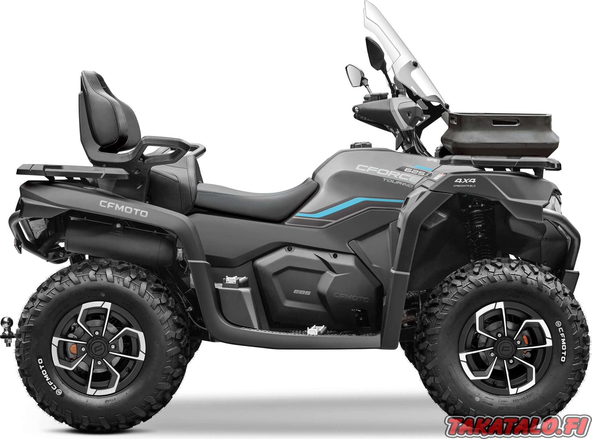 CFORCE 625 Touring on traktorimönkijä, jossa on hyvät istuimet kahdelle matkustajalle, ajamista helpottava ohjaustehostin ja tehokkaat LED ajovalo vakiona. Lisäherkkuna tässä on myös tuulilasi ja muovinen kuljetuskori.