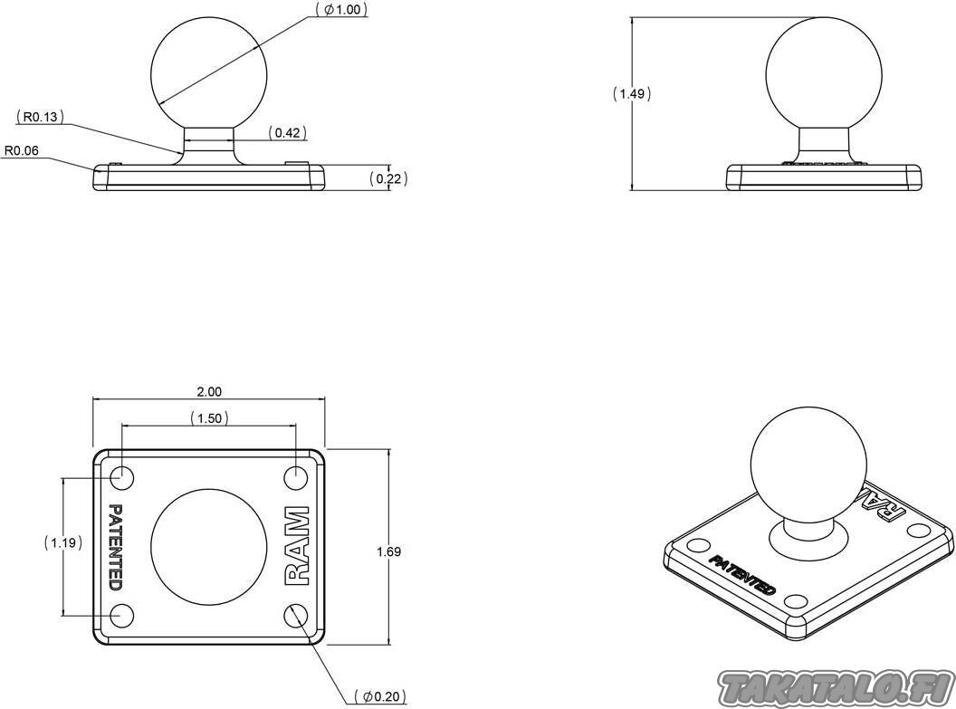 - Hole pattern: 4-hole AMPS (1.181" x 1.496")