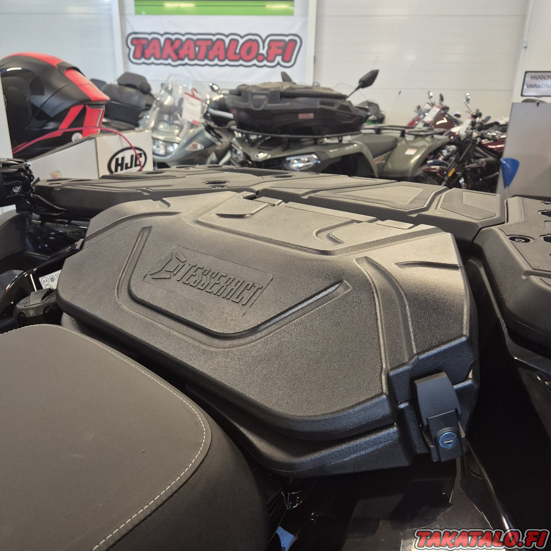 Lockable storage box to be installed in place of the passenger seat for CFMOTO CFORCE 850 and 1000 GEN3 models.