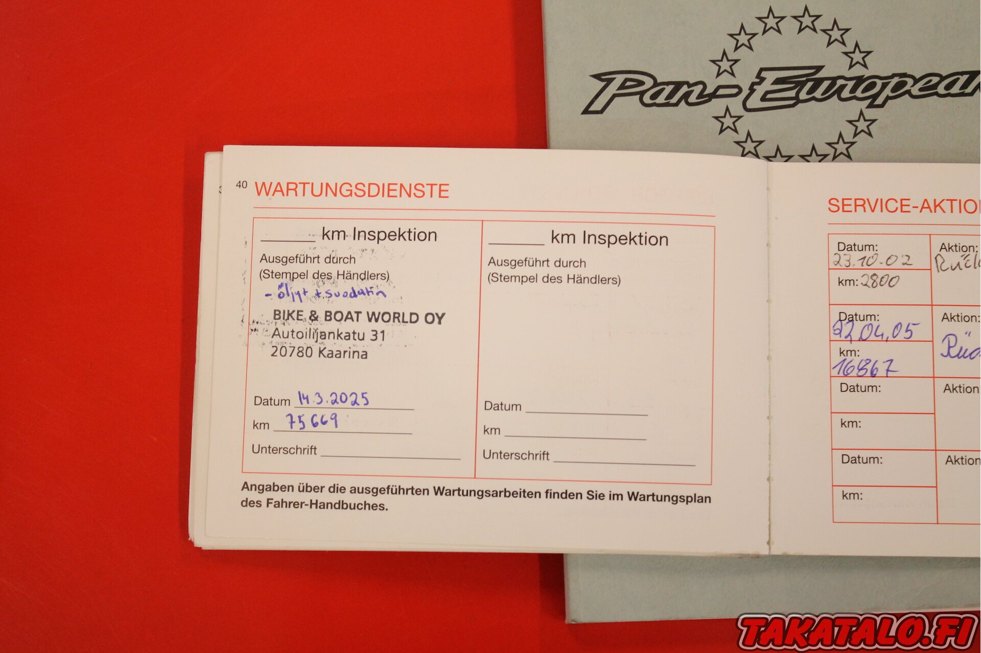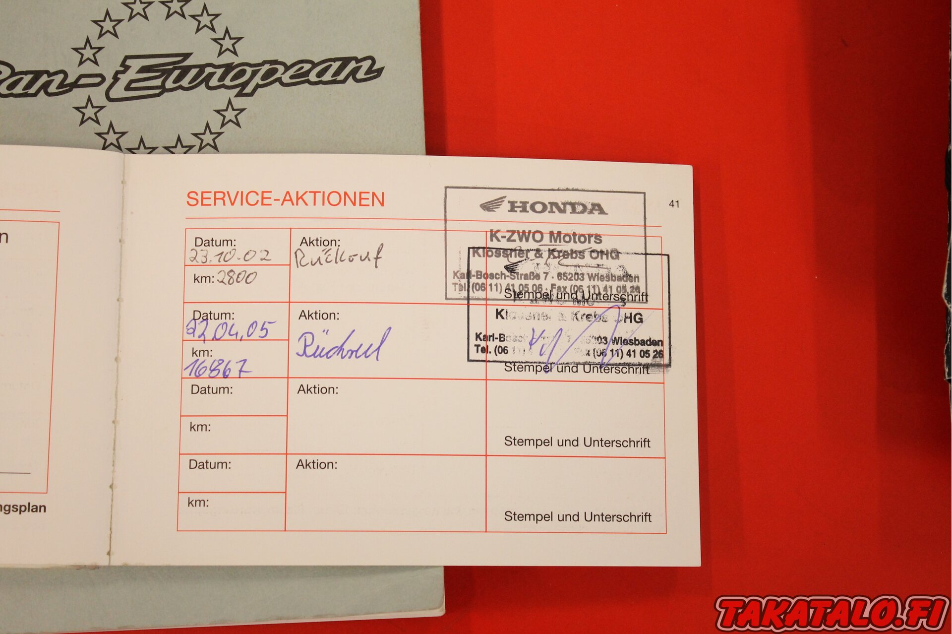 Viimeisin merkintä kirjassa on 75600km kohdalta ja tehty tänäkeväänä.