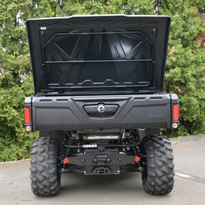 Lukittavan lavakate muuttaa Can-Am Traxterin lavan peräkontiksi. Avaamista auttaa kaasujouset, jotka pitävät katteen auki.