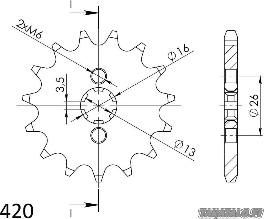 Teräksinen eturatas 10 hammasta 420 ketjulle.
