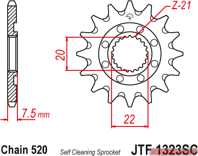 Itsepuhdistuva eturatas 14 hammasta Honda CRF250x motocross.