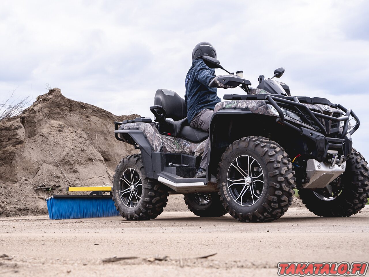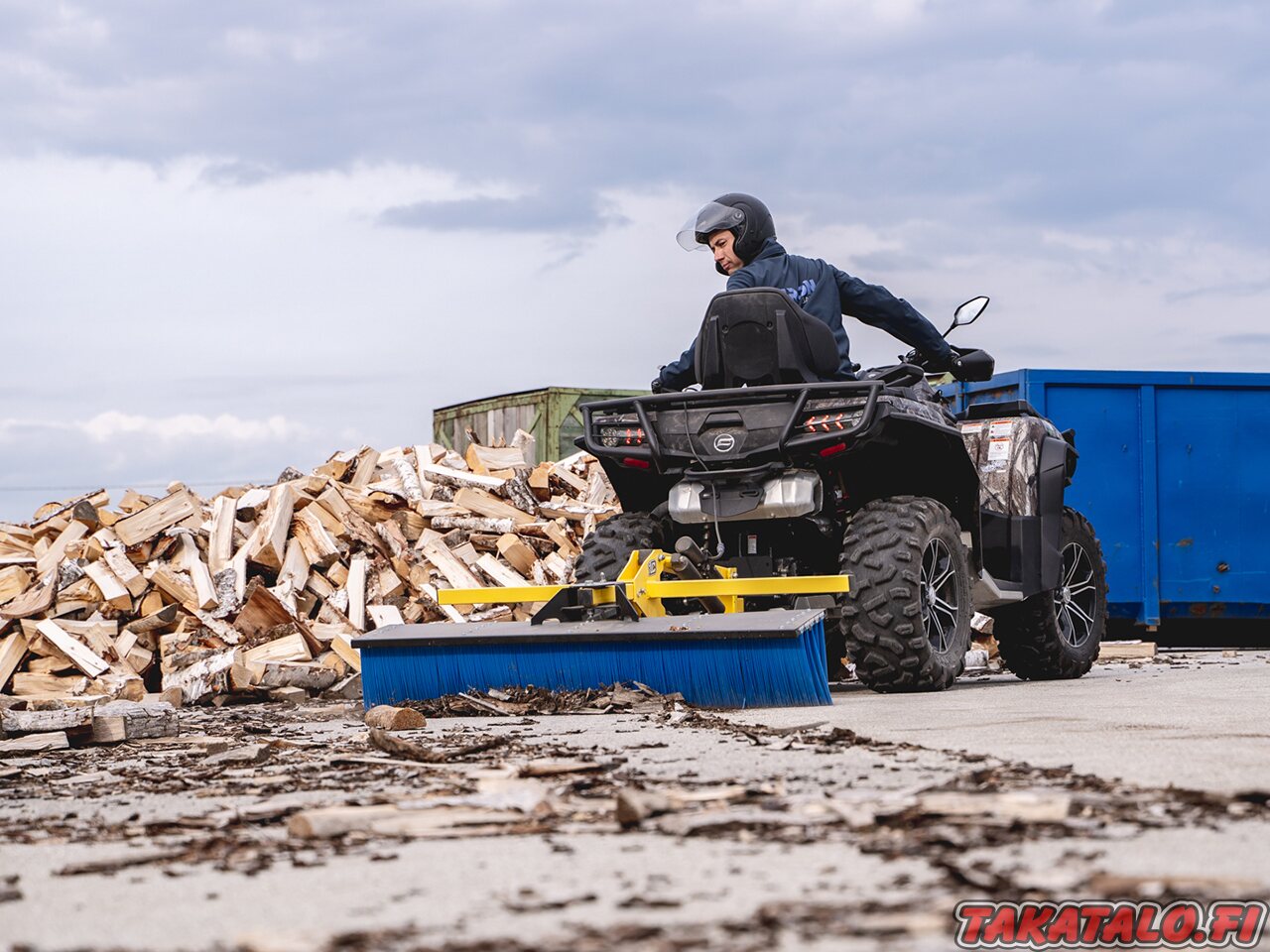 Iron Baltic takanostolaitteeseen sopiva tieharjalla puhdistat alueet kuten jalkakäytävät, parkkialueet, varastot tai navetat erinäisistä jätteistä, lehdistä tai lumesta.