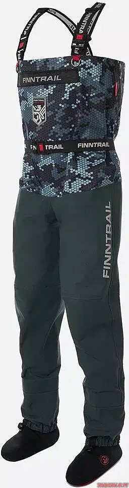Kiinteä neropreenisukat takavaat sen, ettei vesi pääse sisälle nilkoista. Suosittelemmekin hankkimaan Fintrail kengät yhdessä kahluuhousujen kanssa, niin saat parhaan lopputuloksen.