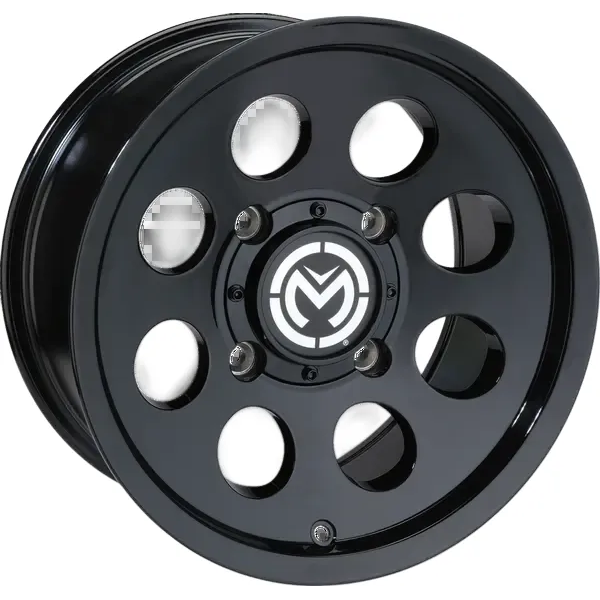 Tyylikkään mustat vanteet Moose -keskikupilla. 12x7 koko sopii hyvin yleisiin rengasleveyksiin 8-12".