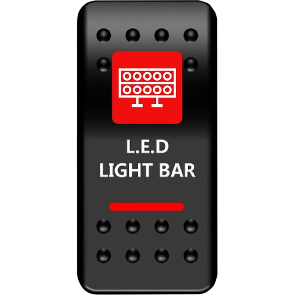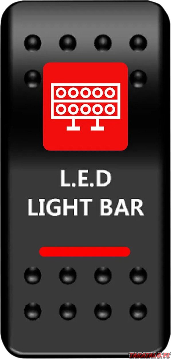 Lisävalon kytkin L.E.D LIGHT BAR tekstillä ja paneelin kuvalla sekä punaisella valolla.