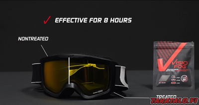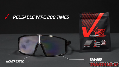 Visiodry Visiofog on mikrokuituinen liina, jossa on mukana huurteenestoa estäviä ainesosia. Mikrokuituliina on uudelleen käytettävissä jopa 200 kertaa.