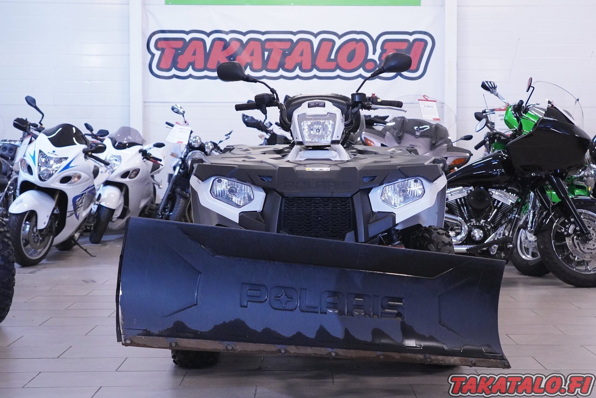 Fiksukuntoinen Polaris Sportsman pikakiinnitteisellä puskulevyllä ja ohjaustehostimella.