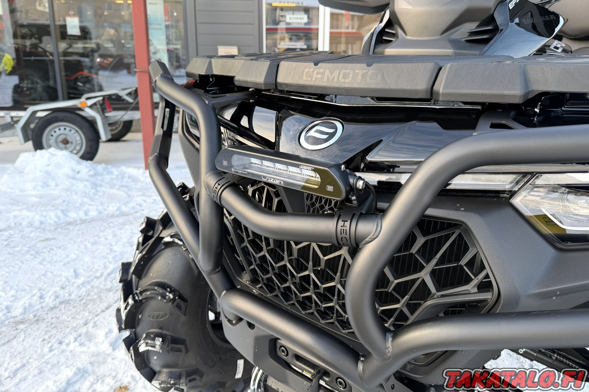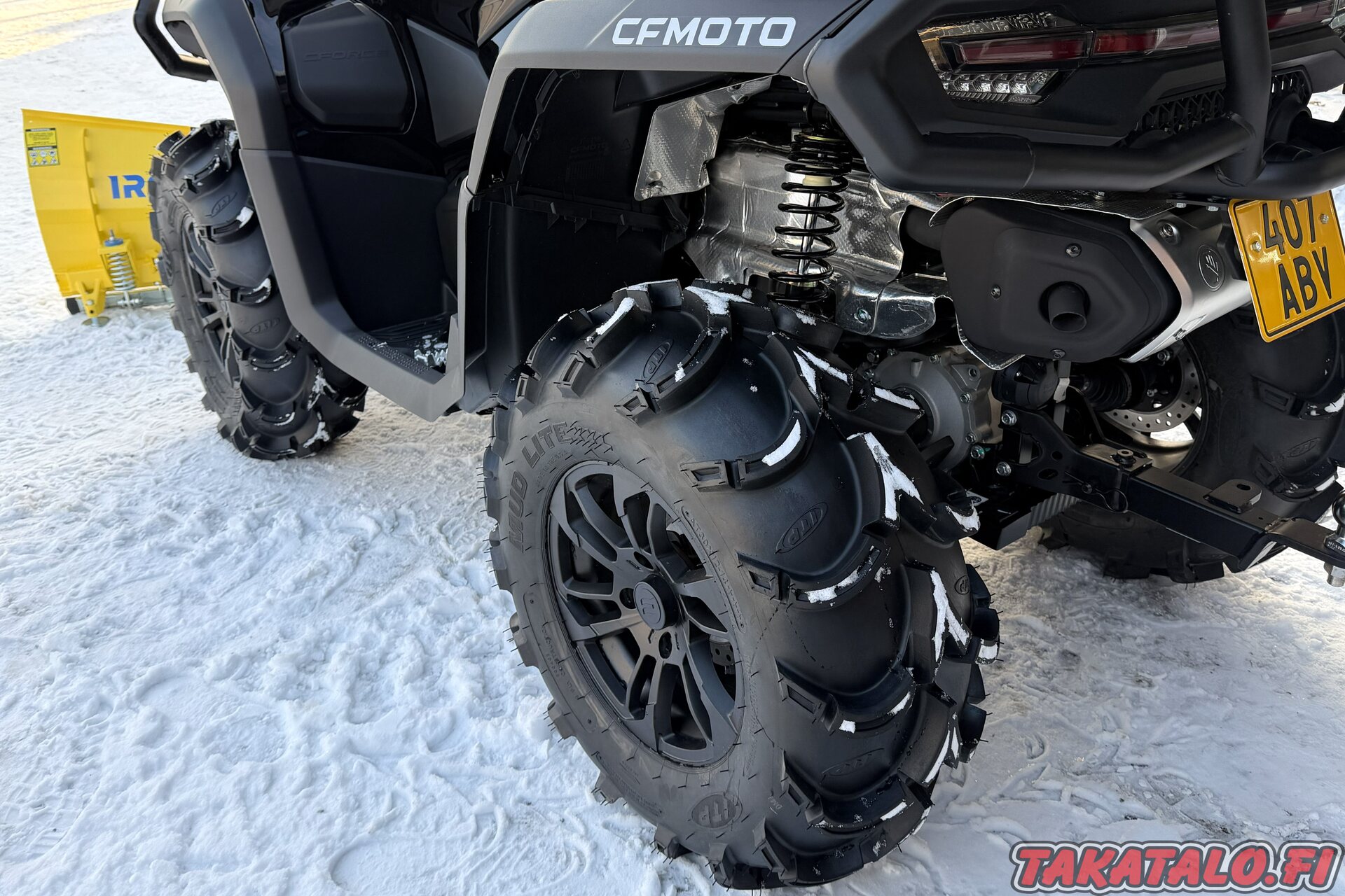Vakiona löytyy mm. 3500lbs vinssi, etu- ja takapuskuri, iso värinäyttö, 3-ajomoodia, säädettävä ohjaustehostin, sähköisesti kytkettävä neliveto ja etuperän lukko, LED ajovalot ym. ym.