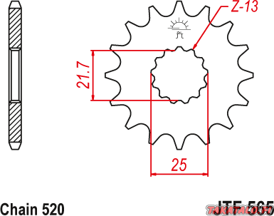 JT 14 piikkinen teräksestä valmistettu eturatas JTF565.15.
