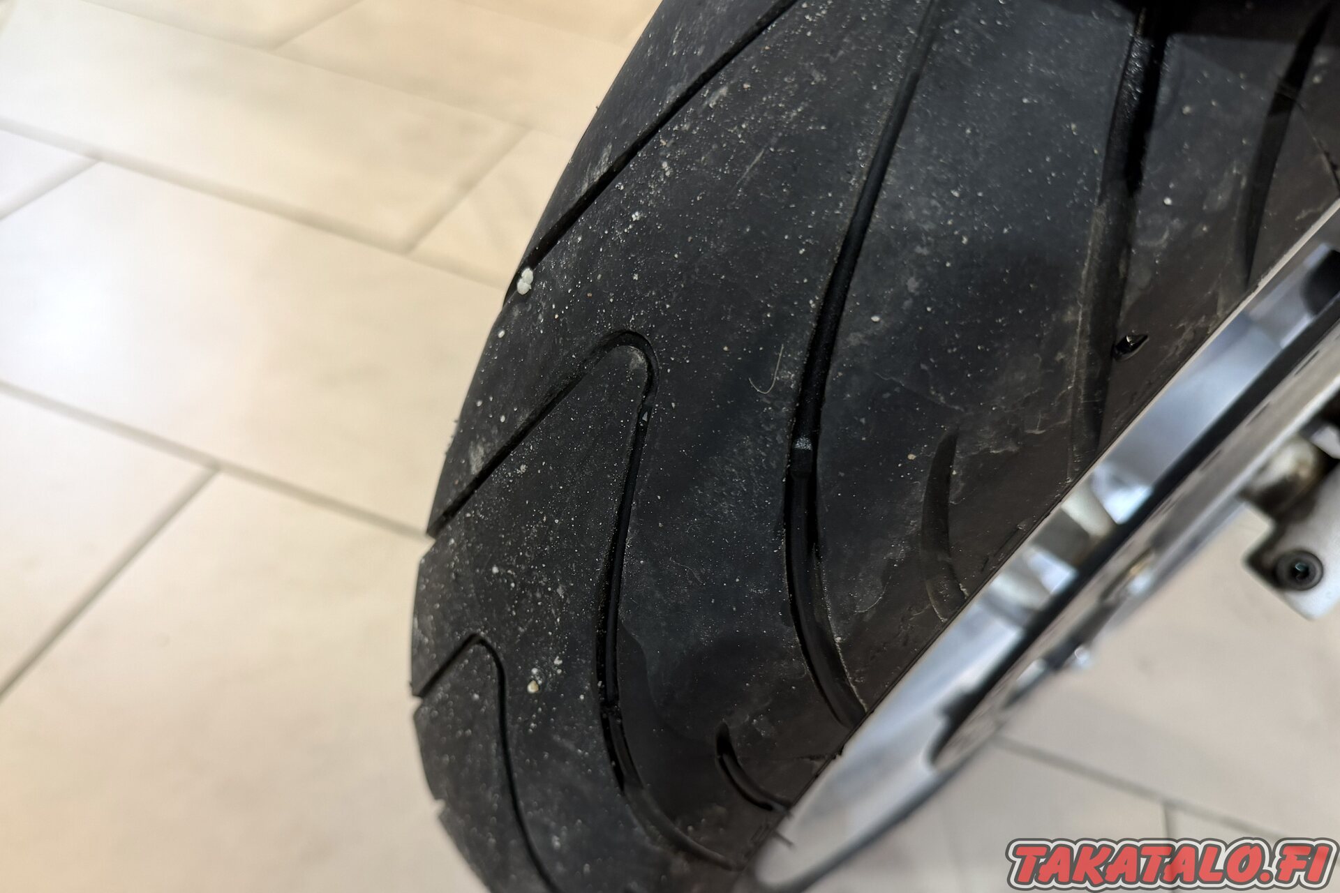 Huoltohistoriasta ei ole kuin tarinoita, joten suositellaan huollon tekemistä. Renkaissa vielä ok pinta.