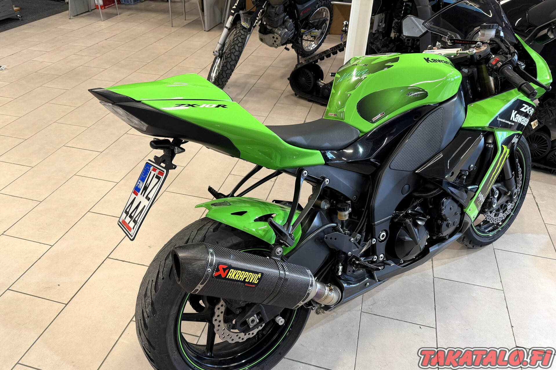 Kawasaki ZX-10R on muoviluoti parhaimmillaan. 180 hevosen voima korkealle kiertävästä nelosmoottorista, agressiivinen ajoasento, tehokkaat jarrut ja toimiva alusta tekee ajamisesta nautinnon. Ja tottakai Kawasakin vihreänä!